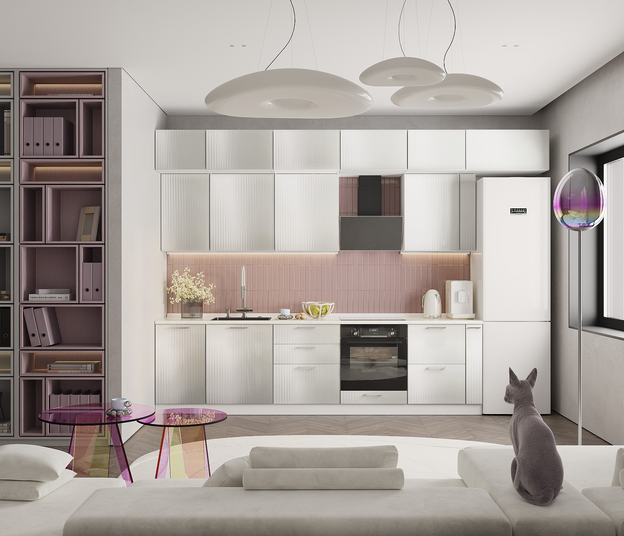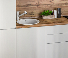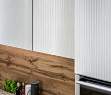 Имитация 3D рифления: Уникальная текстура фасадов с имитацией 3D рифления добавляет глубину и объем вашему интерьеру. Это решение создает эффектный визуальный контраст и придает кухне современный и стильный вид.