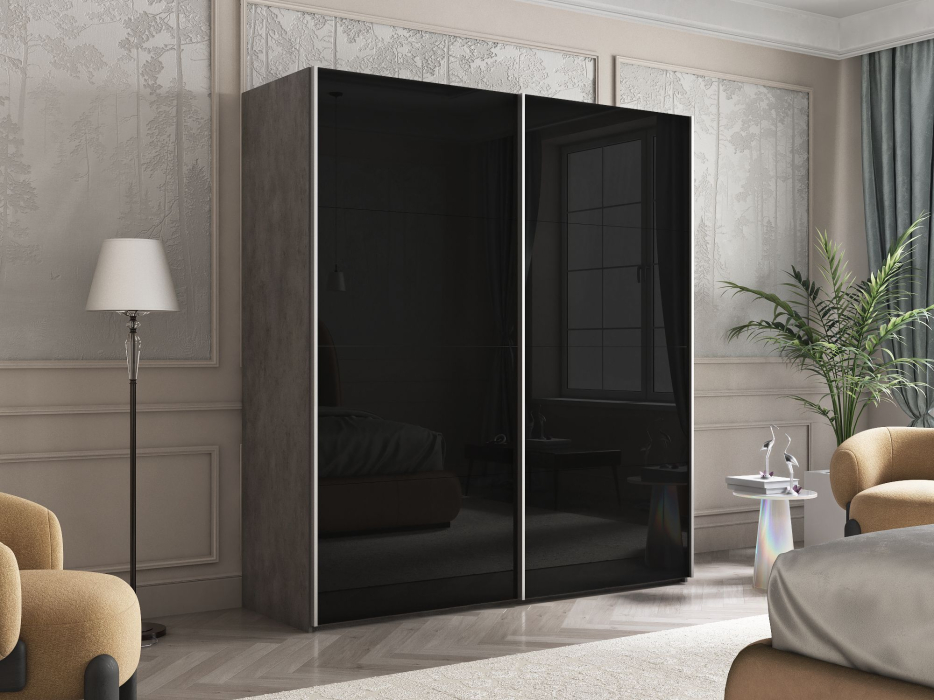 Шкаф Эста дуо Стекло черное 2400 х 2000 х 660 (Бетон серый) Код I0000391814