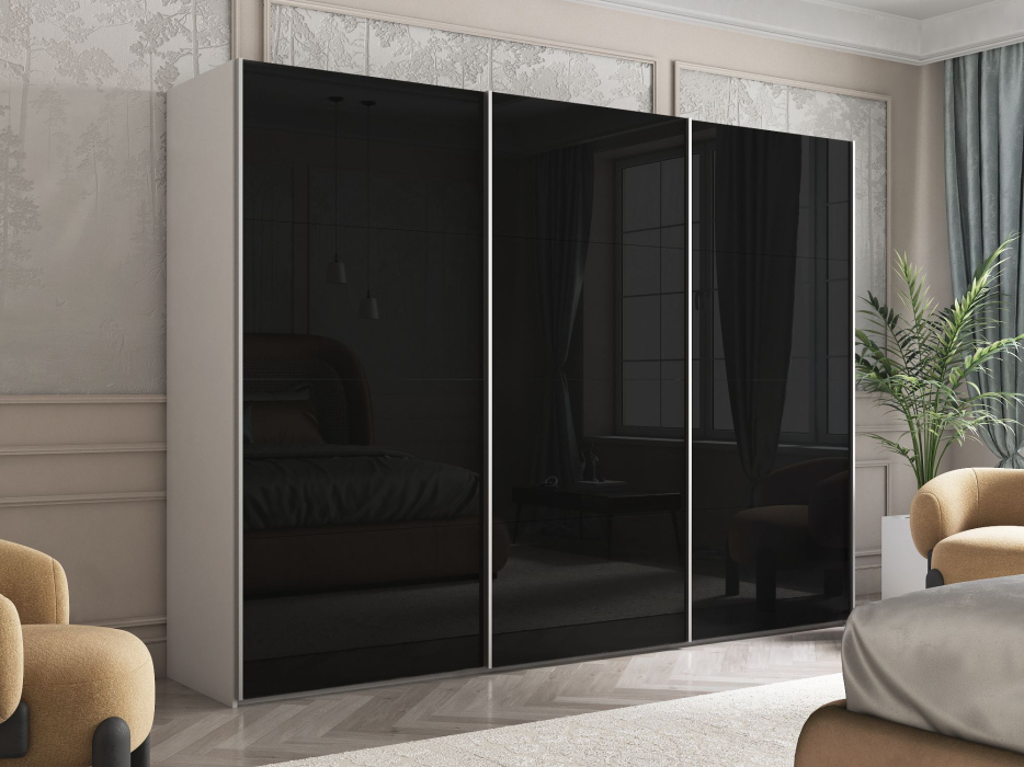 Шкаф Эста трио Стекло черное 2400 х 3000 х 660 (Белый снег)
