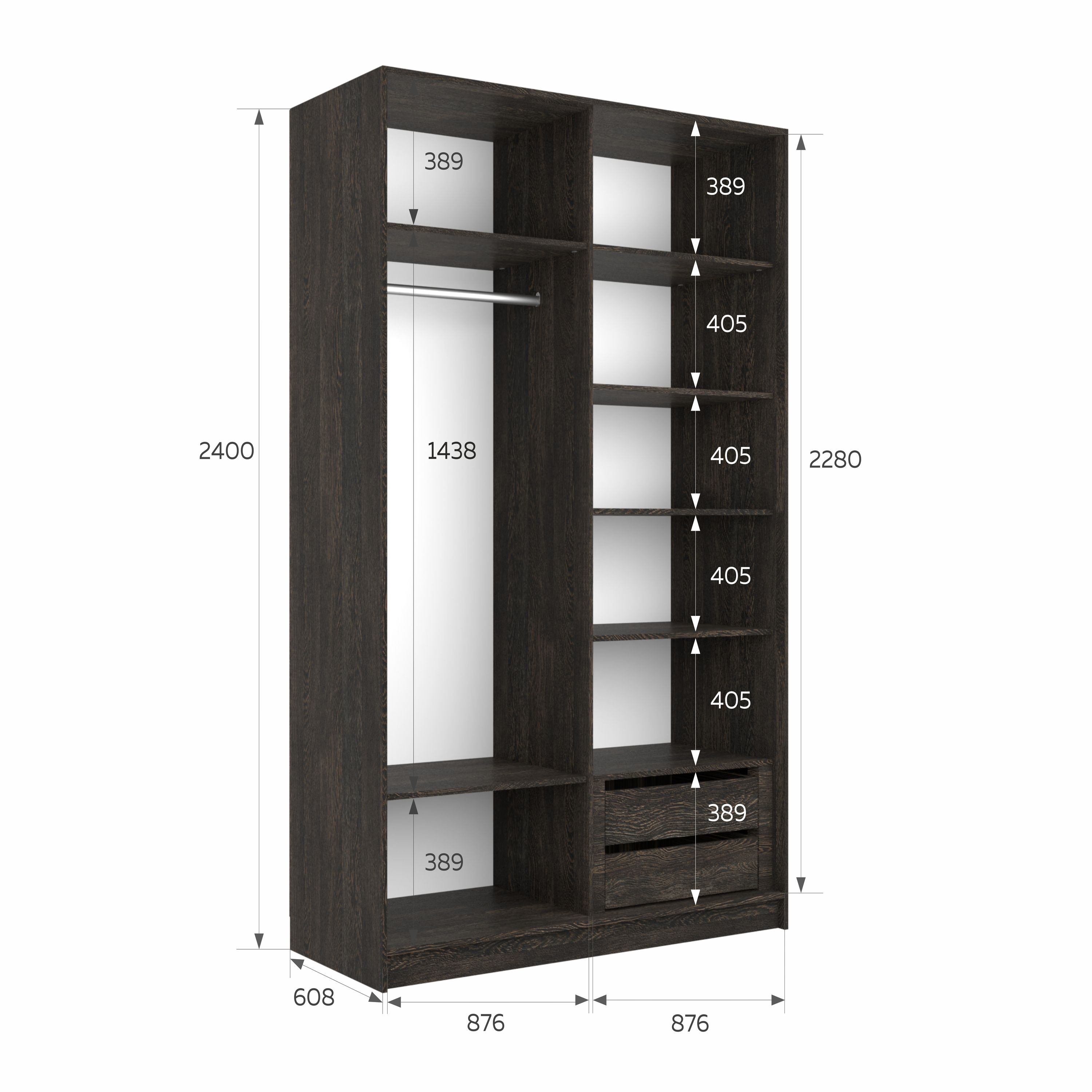 Отзывы о Столплит Шкаф-купе Эста Зеркало+Зеркало 180х66х240 Венге мали