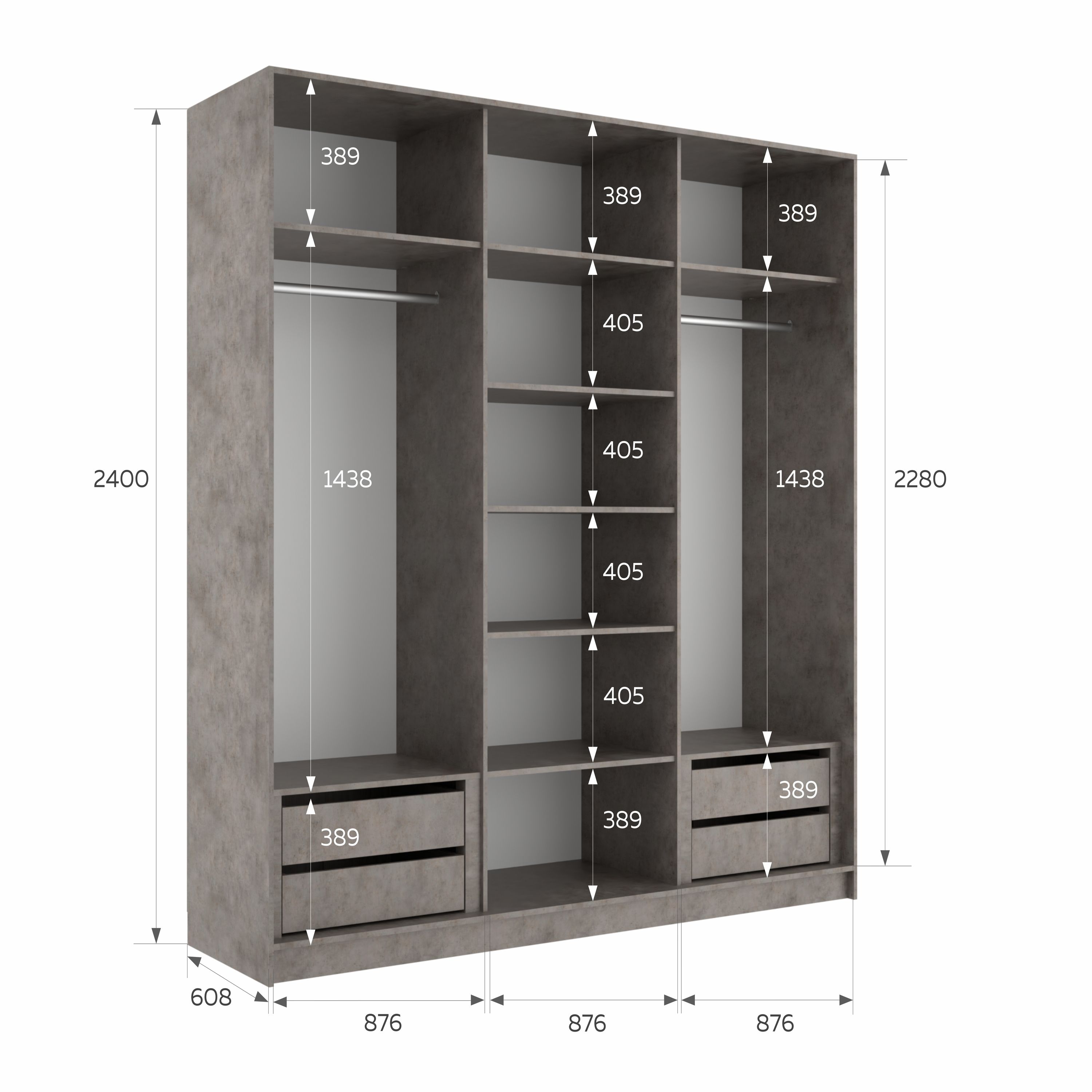 Шкаф-купе Эста Зеркало+Зеркало+Зеркало 270х66х240 (Бетон серый) Код I0000392333