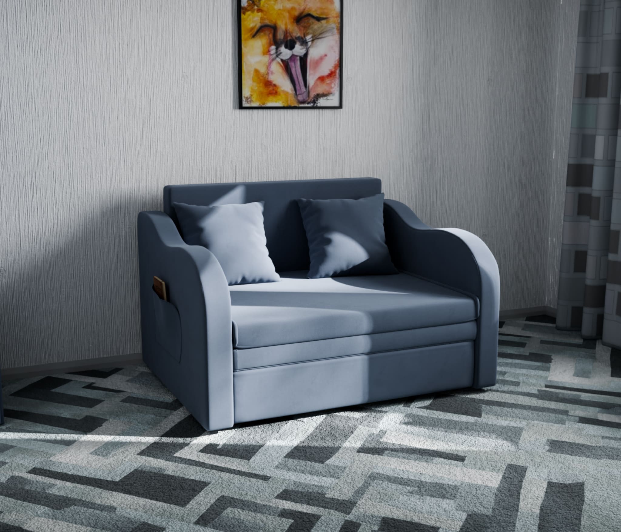 Детский диван-кровать "Бали" - это прекрасный выбор для тех, кто ищет удобный и практичный диван для своего ребенка. Этот миниатюрный и лаконичный диван идеально подходит для детской комнаты или небольшой кухни и оснащен вместительным ящиком для белья.
