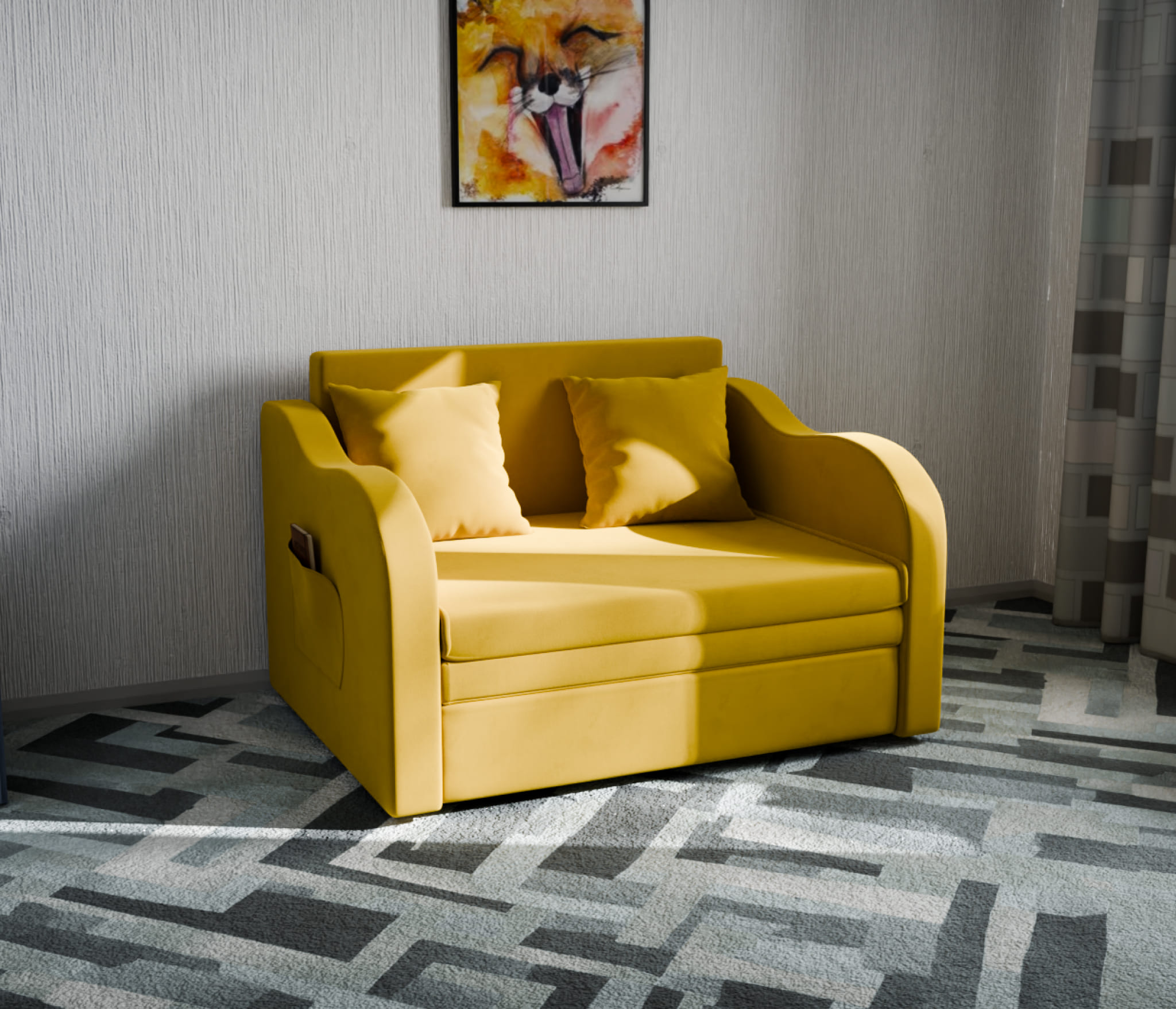 Детский прямой диван Бали,выкатной,велюр (Желтый) Код I0000393436