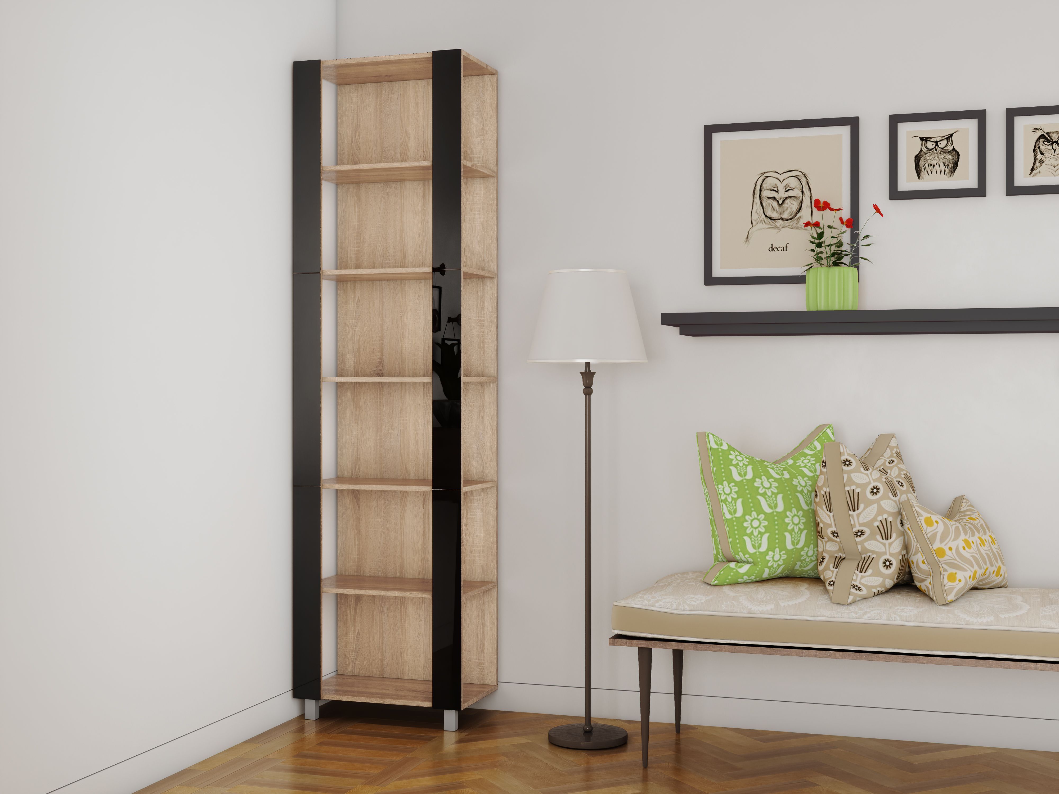 Отзывы о Столплит Стеллаж модульный Универсальный 35х51х230 Черное стекло Дуб сонома