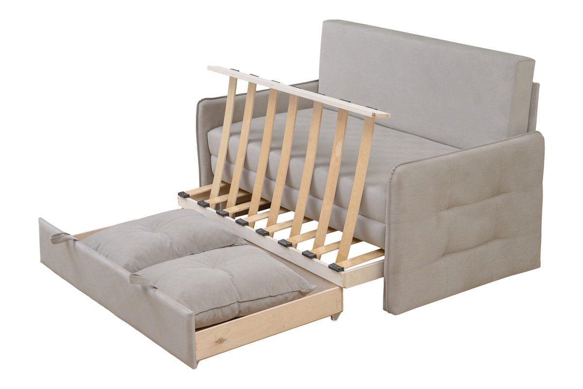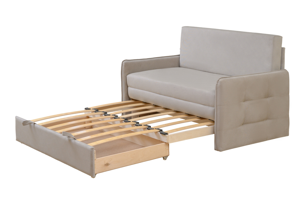 Диван-кровать Смайл, габарит 136 x 85 x 90, спальное место 120 x 195, механизм трансформации: выкатной, ящика для белья есть, наполнение спального места: ппу