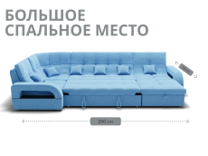 Он имеет высоту 97 см, ширину 350 см и глубину 187 см. Обит велюром - Veluta lux. Диван обладает универсальным расположением угла, что позволяет его использовать в любом помещении.