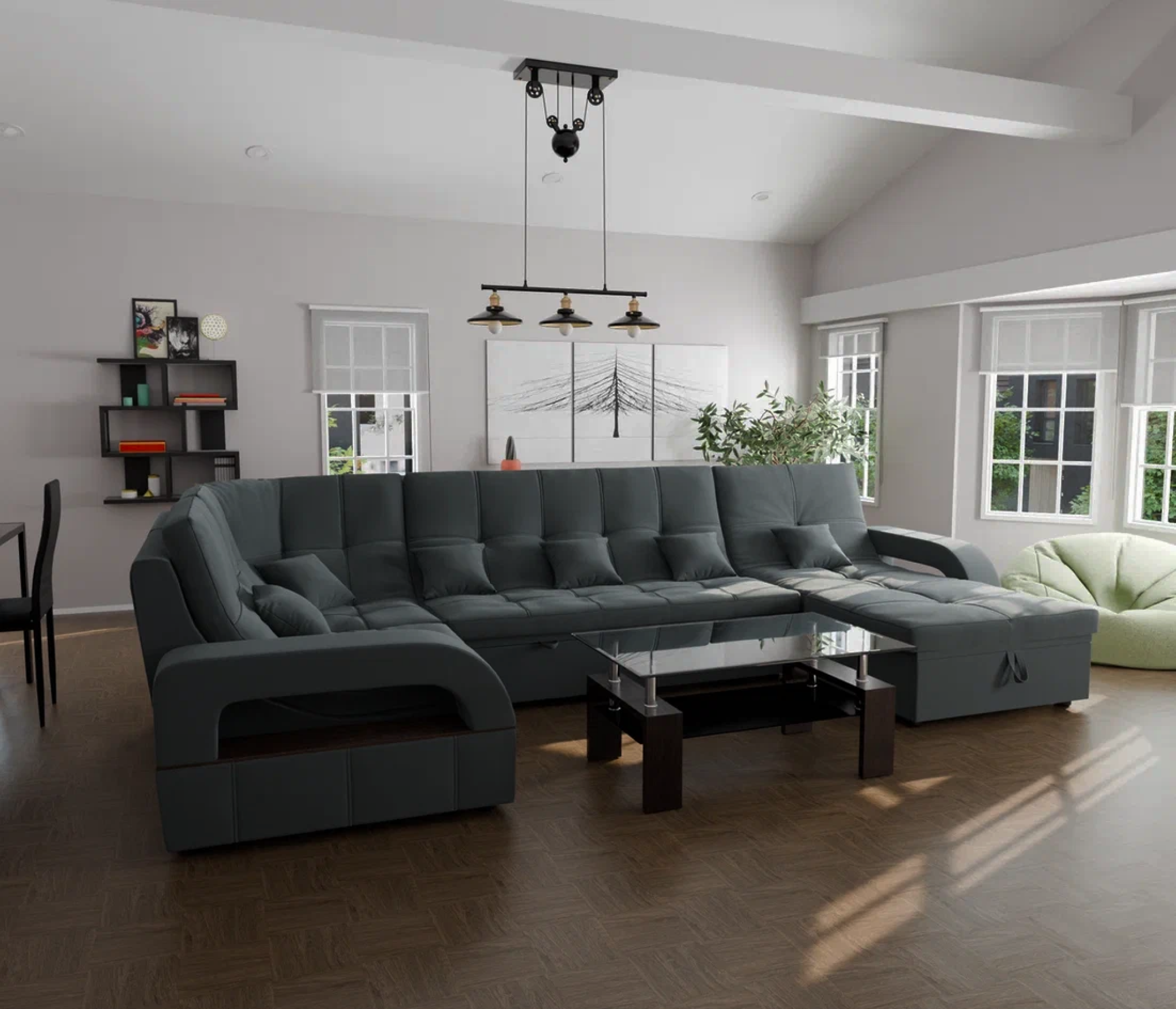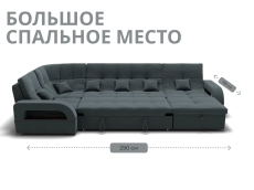 Он имеет высоту 97 см, ширину 350 см и глубину 187 см. Обит велюром - Veluta lux. Диван обладает универсальным расположением угла, что позволяет его использовать в любом помещении.