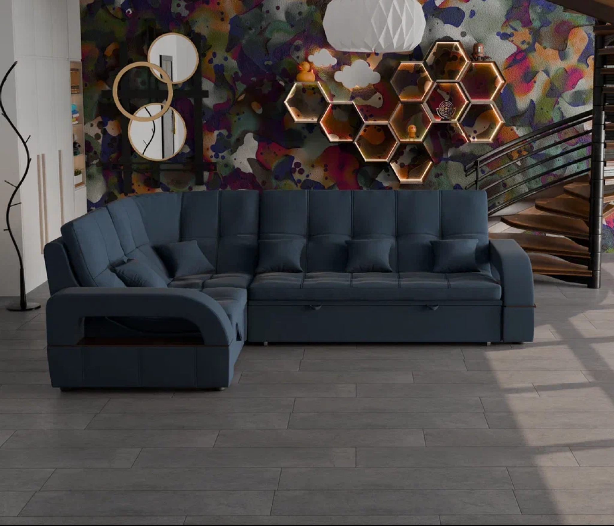 Отзывы о Столплит Модульный диван Майами-3,микровелюр,антивандальная и водостойкая ткань,венеция Индиго синий