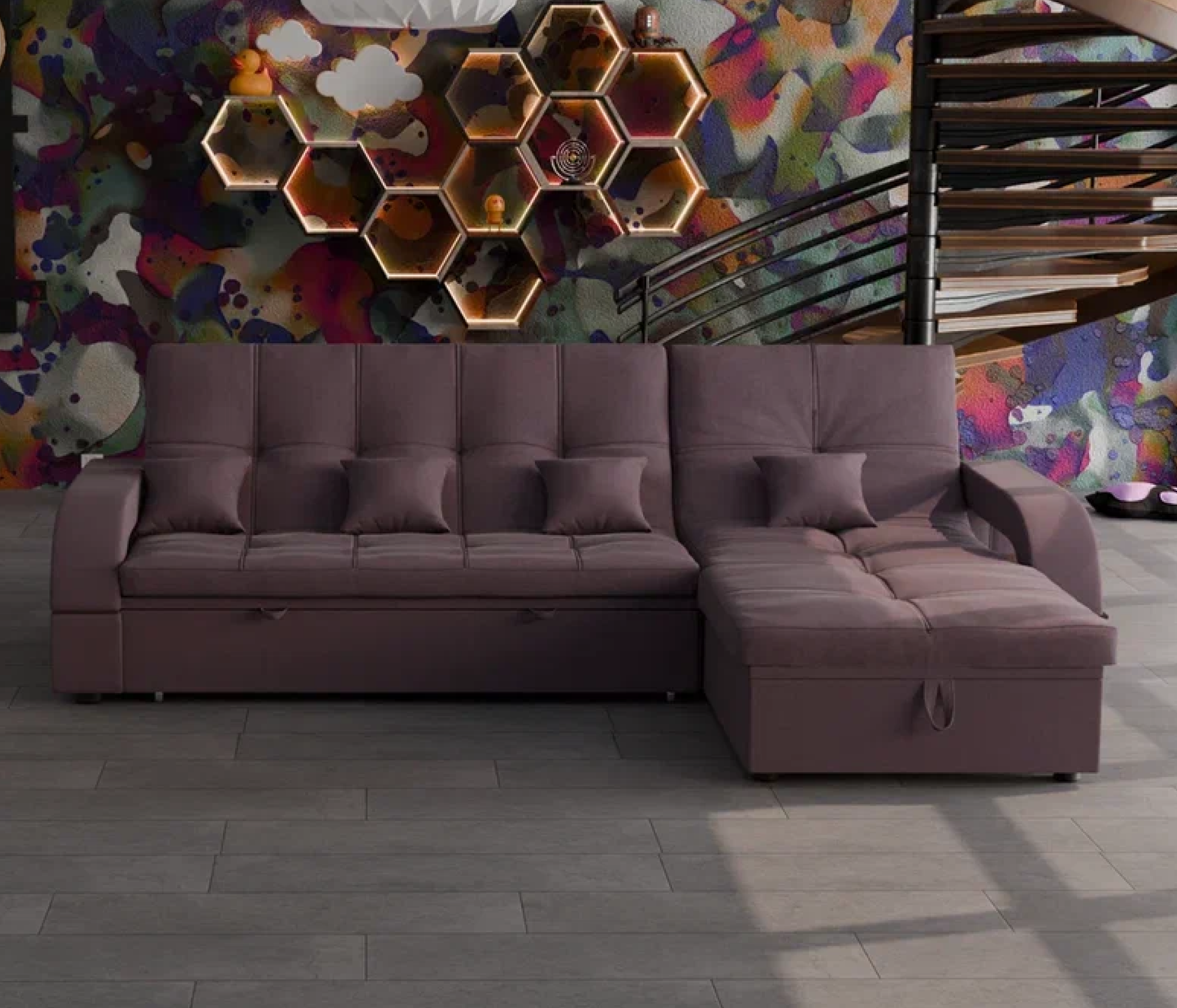 Отзывы о Столплит Модульный диван Майами-2,микровелюр,антивандальная и водостойкая ткань,венеция Фиолетовый меланж