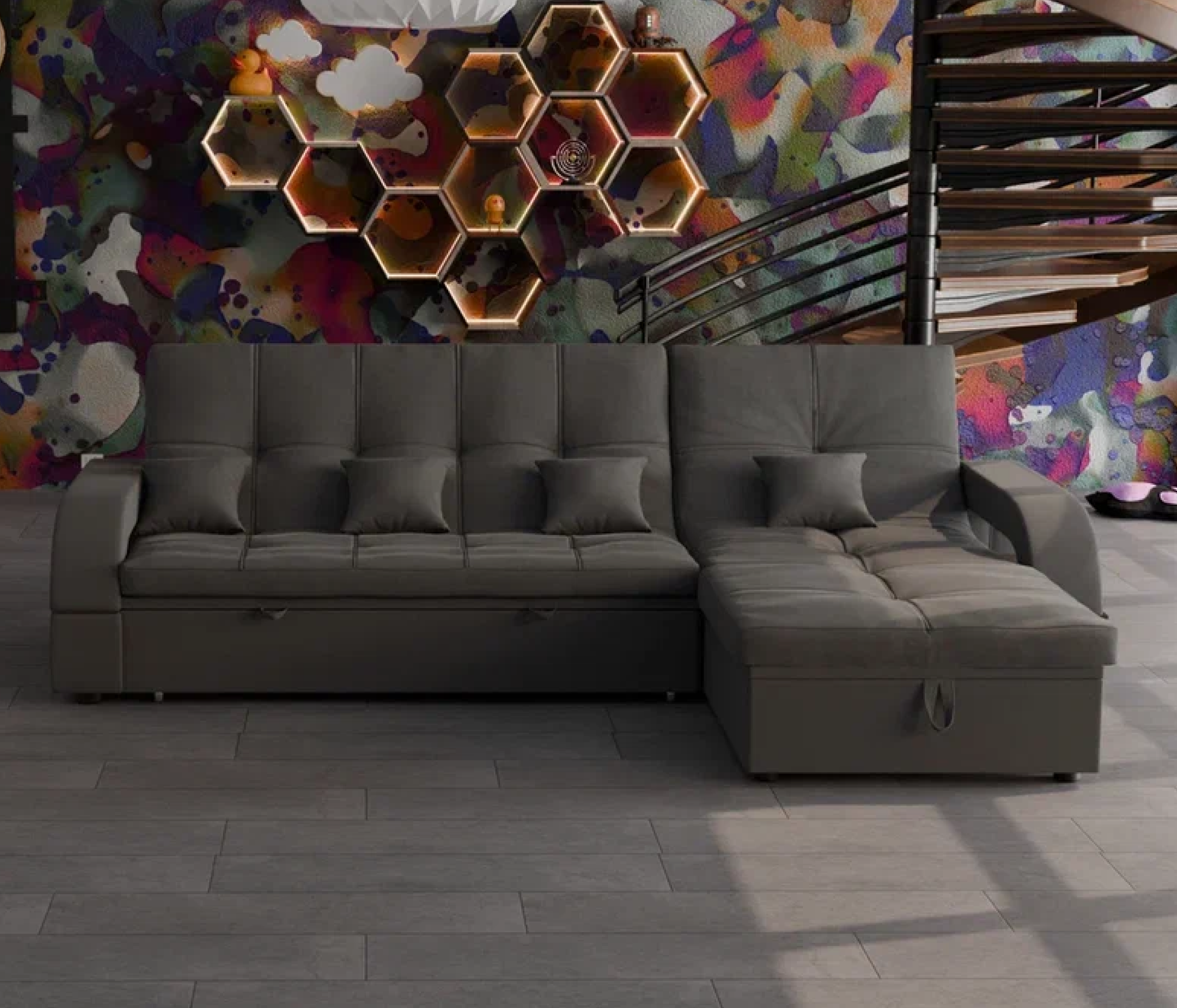 Отзывы о Столплит Модульный диван Майами-2,микровелюр,антивандальная и водостойкая ткань,венеция Серый