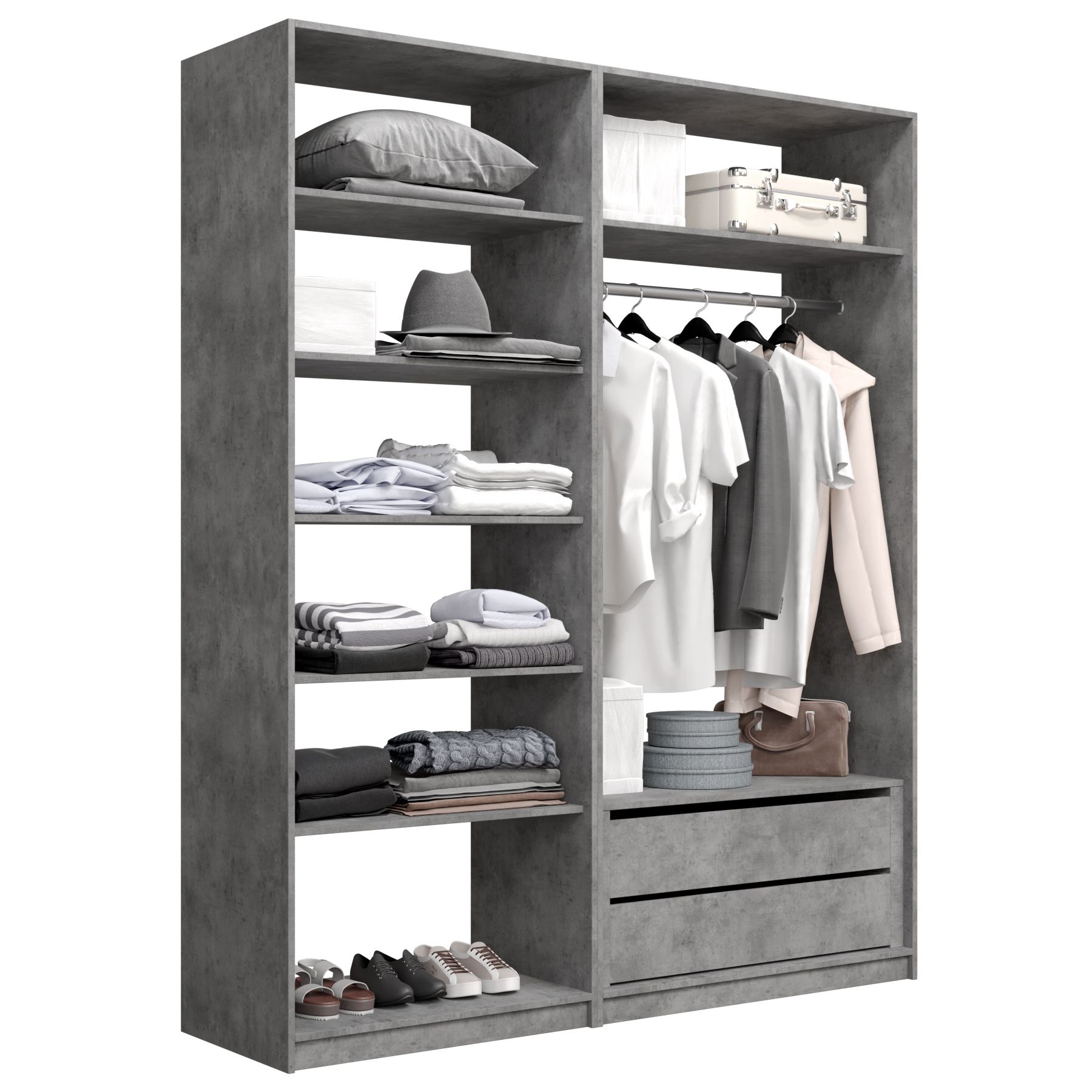 Прямая гардеробная система с полками и модулем MOD_COMPL (Бетон)