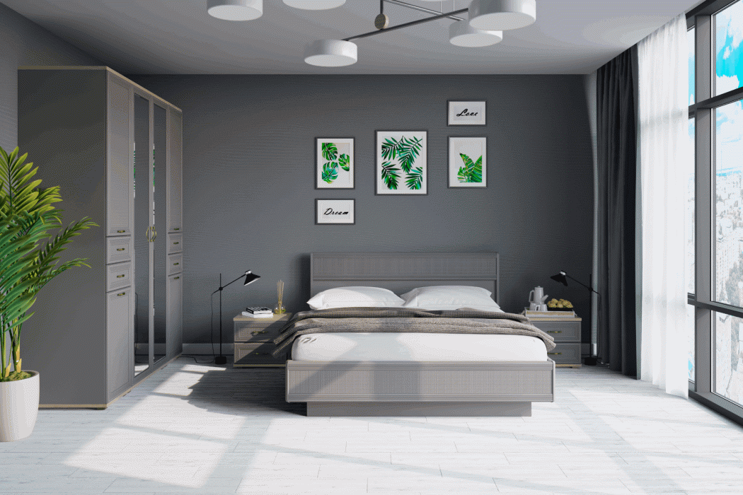 Спальня Карина СК-1001 (Гикори Джексон светлый/Серый Оникс)