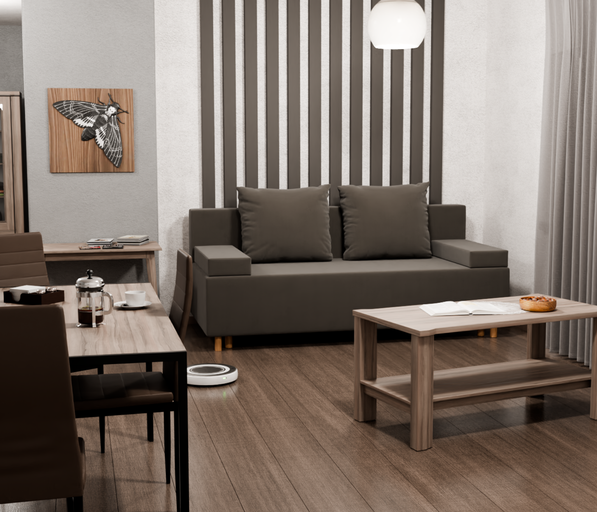 Диван-кровать имеет универсальный угол, что позволяет установить его в любой комнате, даже если она небольшая. Обивка выполнена из высококачественного велюра, который не только выглядит стильно, но и легко чистится.