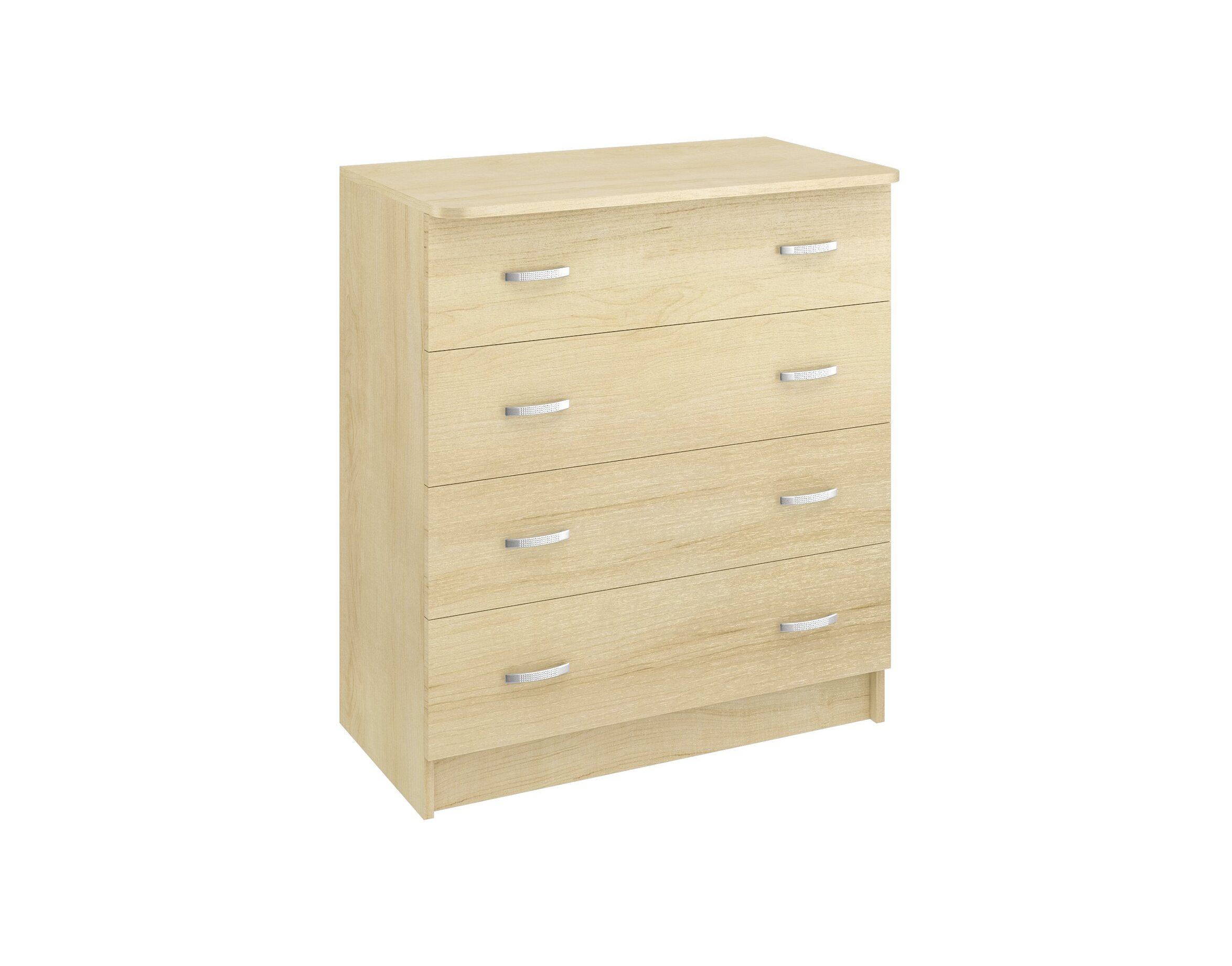 Комод КМ-21 изготовлен из ЛДСП.Вместительный ,оснащён четырьмя выдвижными ящиками на роликовых направляющих.Высота комода 910мм,ширина 820 мм,глуб 430 мм.Ручки пластик,под цвет серебра ,благодаря небольшим размерам,впишется в интерьер любого помещения.