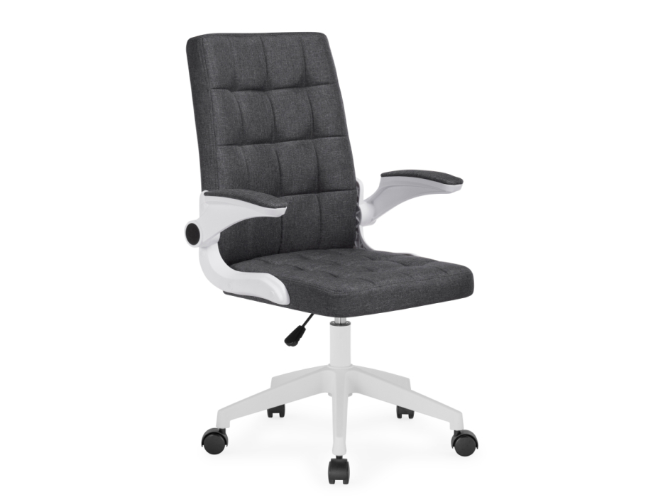 Компьютерное кресло Elga - обивка из тканевого материала, прочный, износостойкий, отлично вентилируется, что обеспечит комфорт даже в жарком и плохо проветриваемом помещении. Откидные подлокотники позволят задвинуть кресло под стол, значительно сэкономив пространство. Крестовина изготовлена их прочного матового белого пластика. Высота подлокотников: 64 - 72 см. Диаметр крестовины: 58 см.