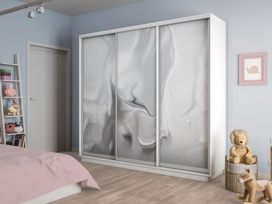 Шкаф-купе Экспресс 3-х дверный Фотопечать Шелк Стекла 180х45х220 (Белый снег) Код I0000407753