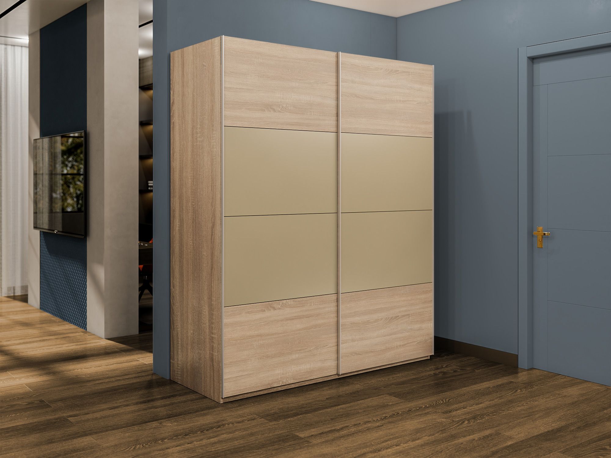 Шкаф-купе Эста 2-х дверный ДСП/Стекла фисташка/Доводчик 180х66х240 (Дуб Бардолино)