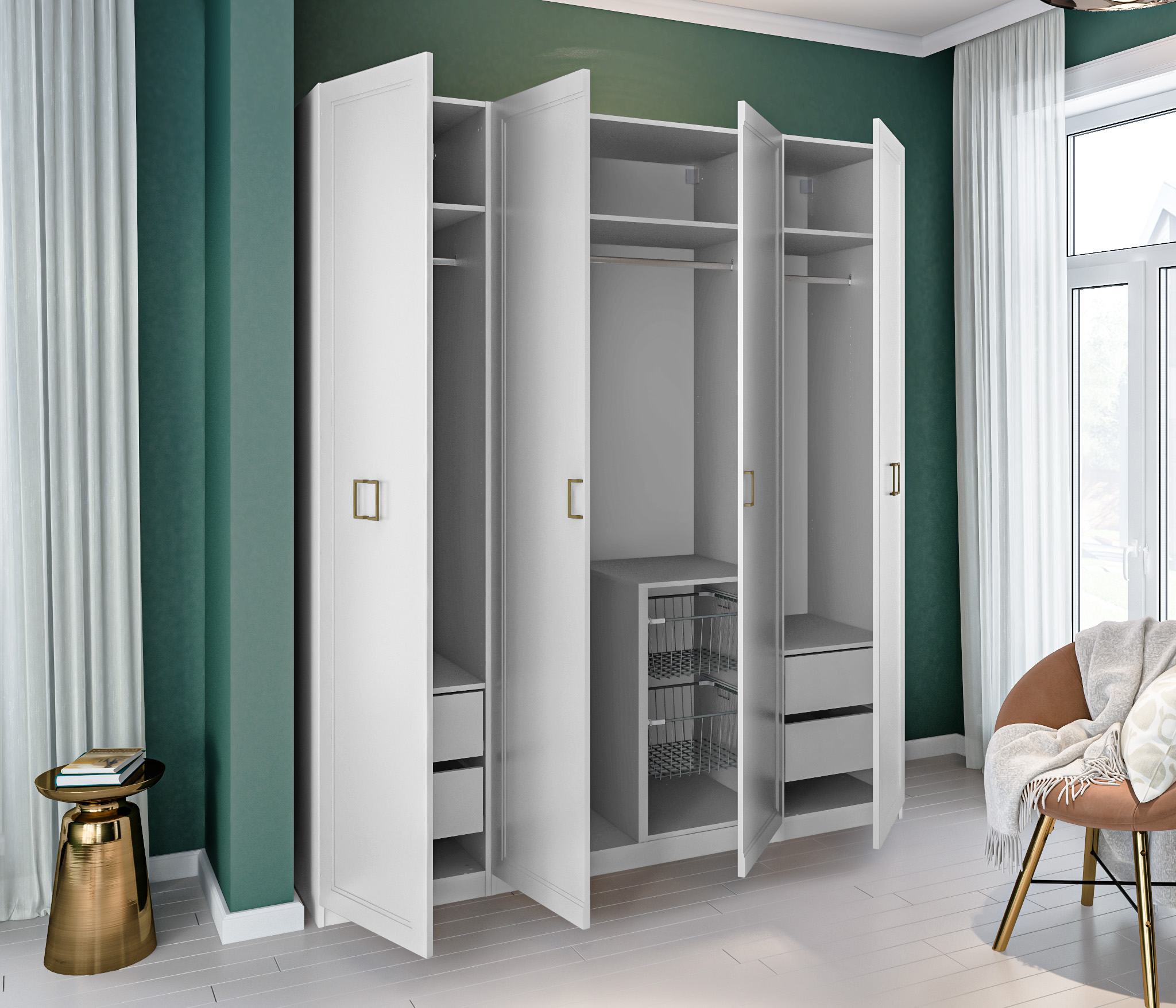 Золотистые ручки и ножки коллекции "Ассоль" добавляют неповторимый шик и изысканность, завершая образ тонким и стильным блеском. Эти акценты создают атмосферу роскоши и утонченности. Они играют роль визуального украшения, дополняя общий вид мебели и придавая ей особый шарм и элегантность.