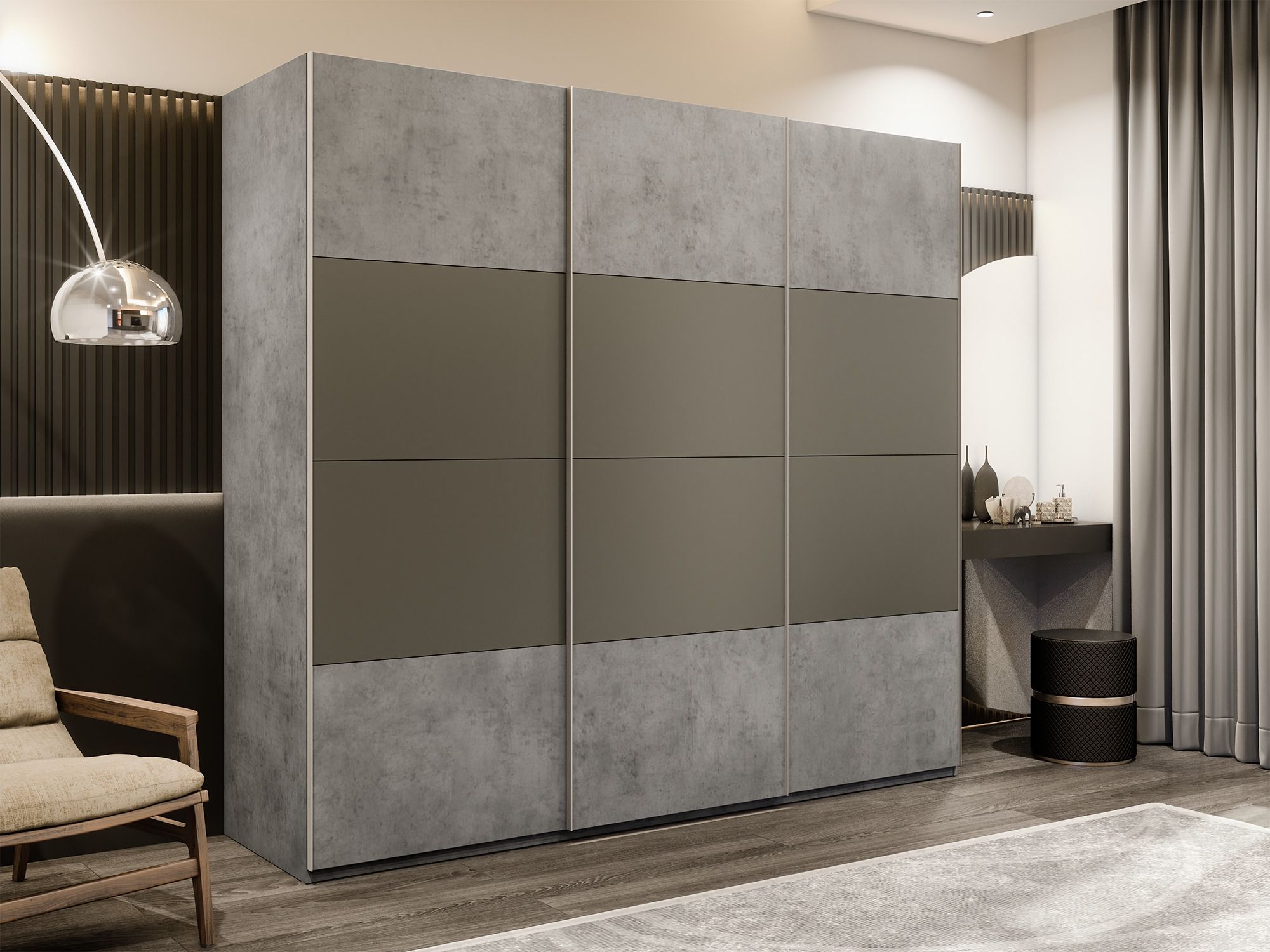 Отзывы о Столплит Шкаф-купе Эста 3-х дверный ДСП/Стекла хаки/Доводчик 240х66х240 Бетон