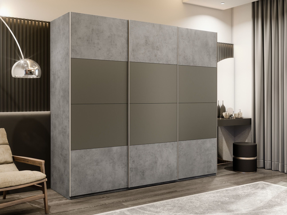 Шкаф-купе Эста 3-х дверный ДСП/Стекла хаки/Доводчик 300х66х240 (Бетон)