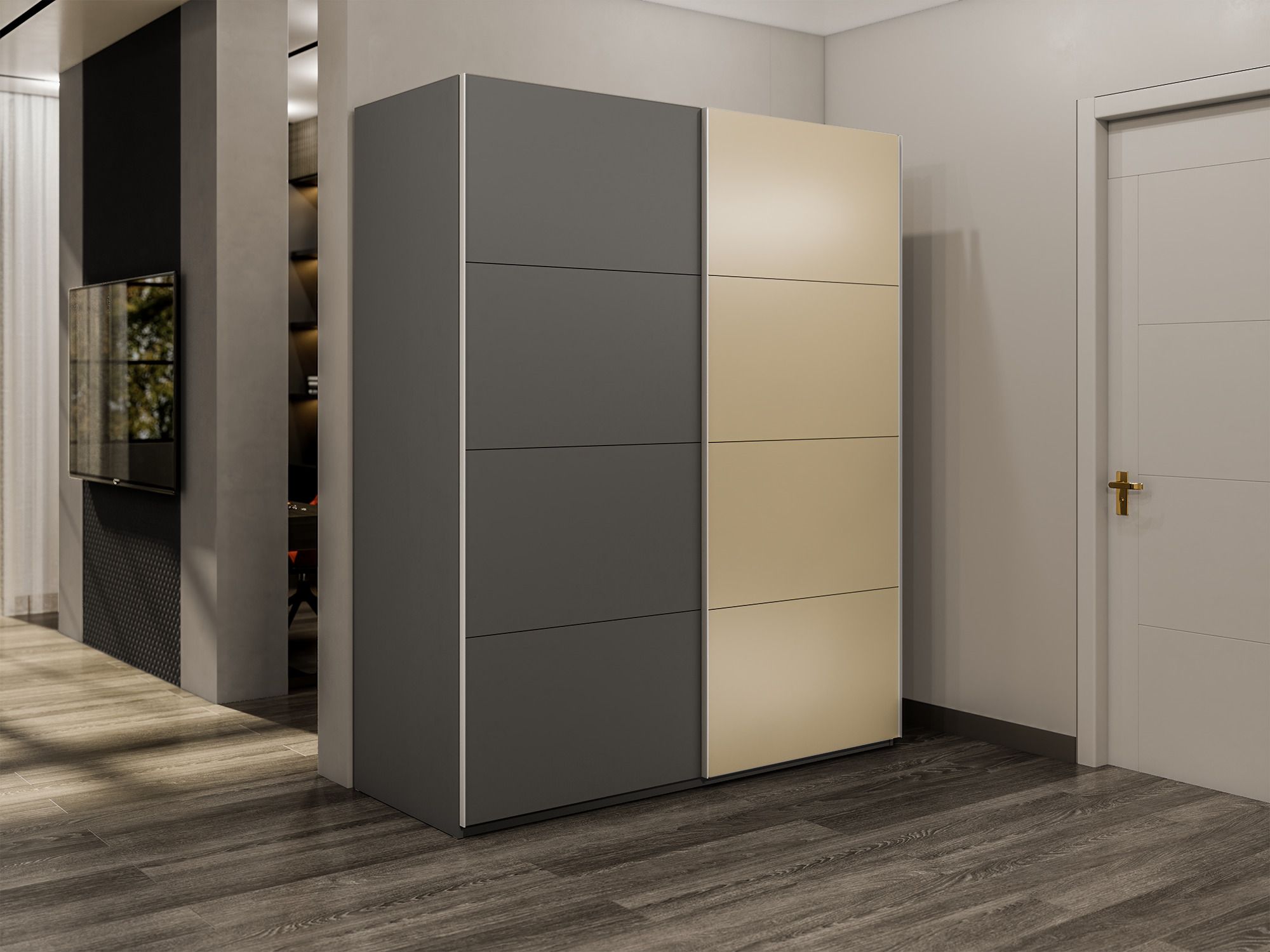 Шкаф-купе Эста 2-х дверный ДСП/Стекла фисташка/Доводчик 180х66х240 (Диамант серый)