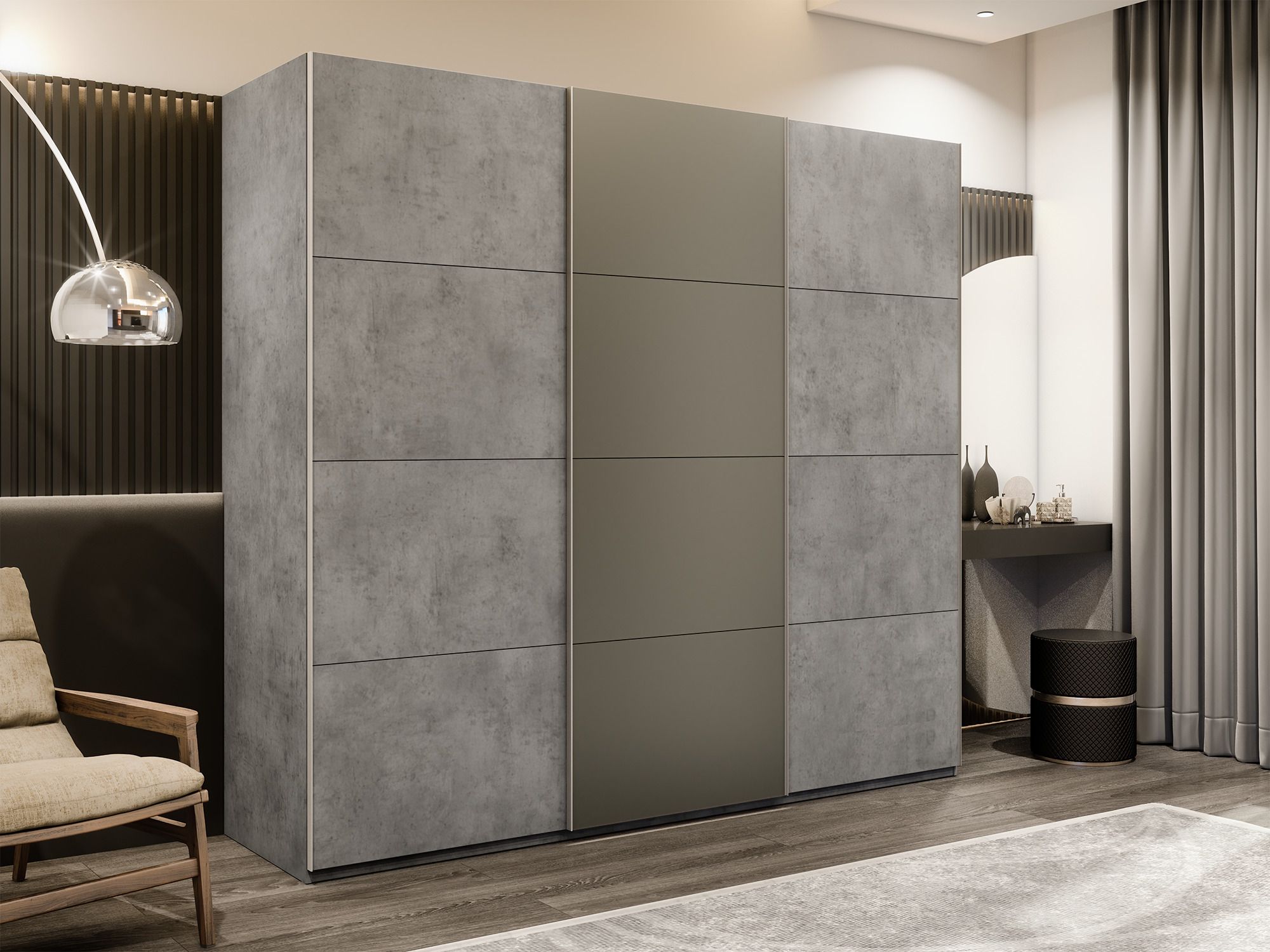 Отзывы о Столплит Шкаф-купе Эста 3-х дверный ДСП/Стекла хаки/Доводчик 240х66х240 Бетон