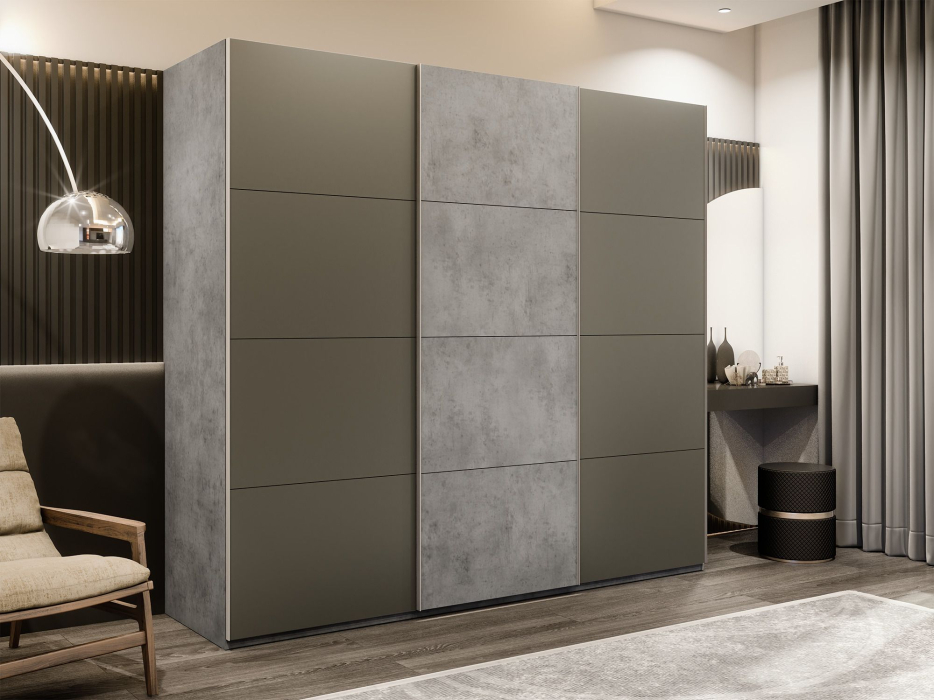 Отзывы о Столплит Шкаф-купе Эста 3-х дверный ДСП/Стекла хаки/Доводчик 270х66х240 Бетон