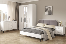 Фасады выполнены из МДФ с матовой ПВХ-плёнкой. Такое решение делает мебель визуально более "мягкой", комфортной и расслабляющей, что особенно актуально для спальни.