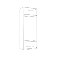 Шкаф оборудован за распашными дверями штангой для одежды на плечиках и антресольной и нижней полками.
