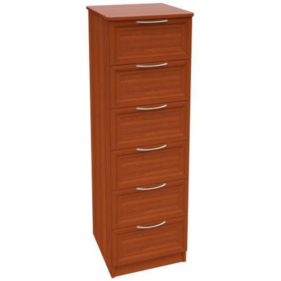 Комод 5 рамка удачно разработан,для маленьких помещений.Ширина всего 43 см,позволяет разместить в любом месте Вашего дома.А 6 выдвижных ящиков,помогут разместить множество разных вещей.Корпус из ЛДСП,фасады рамочные МДФ.Производитель оставляет за собой право менять фурнитуру.