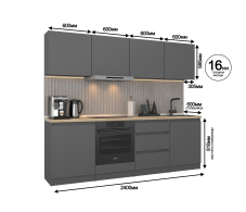 Длина кухни 2,4 метра она идеально подходит для помещений с ограниченным пространством.