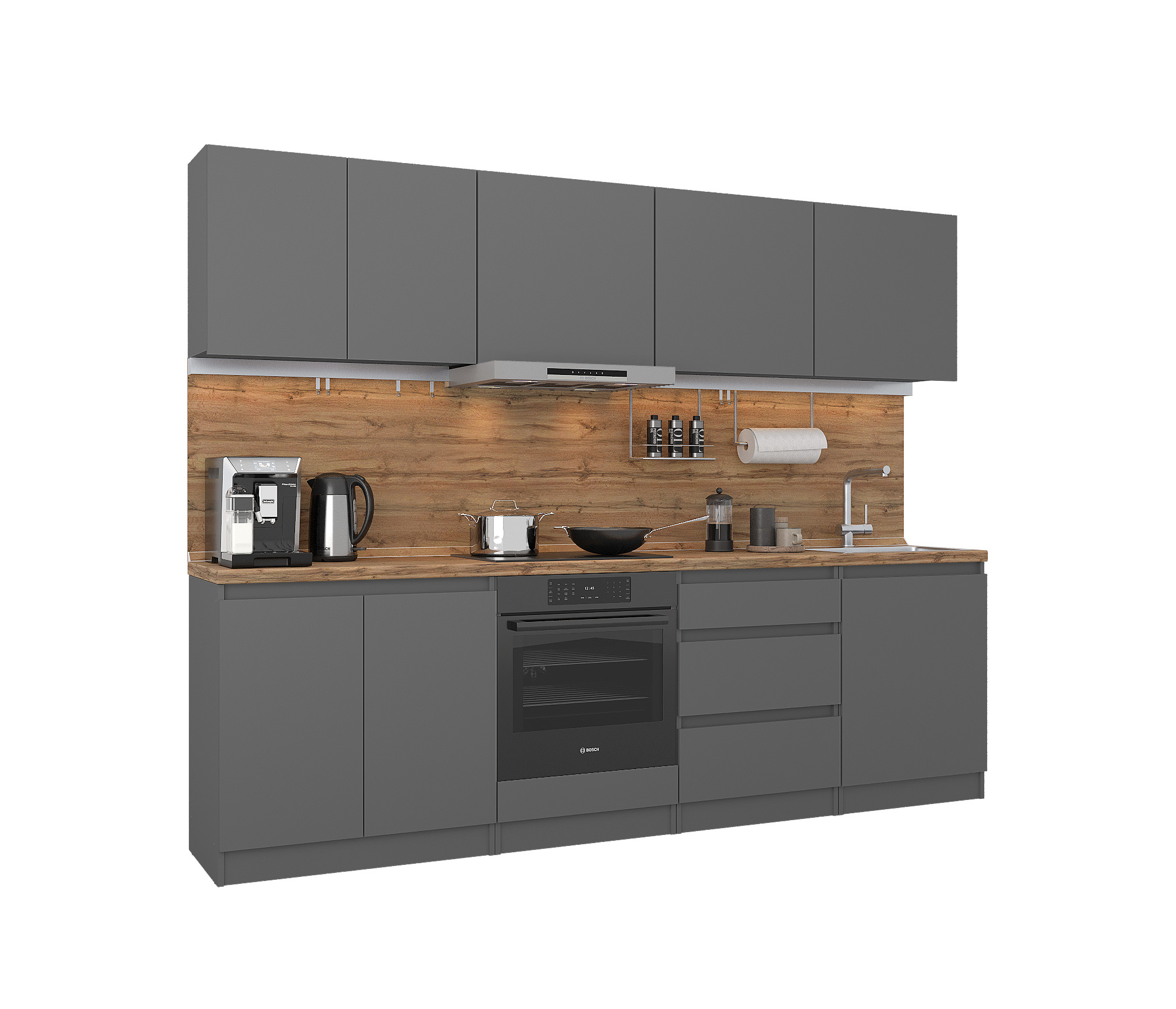 Обратите внимание, что столешница, стеновая панель, мойка и смеситель не входят в комплектацию кухни Леон и приобретаются отдельно. Это позволяет вам выбрать идеальные аксессуары и элементы для создания индивидуального дизайна вашей кухни.