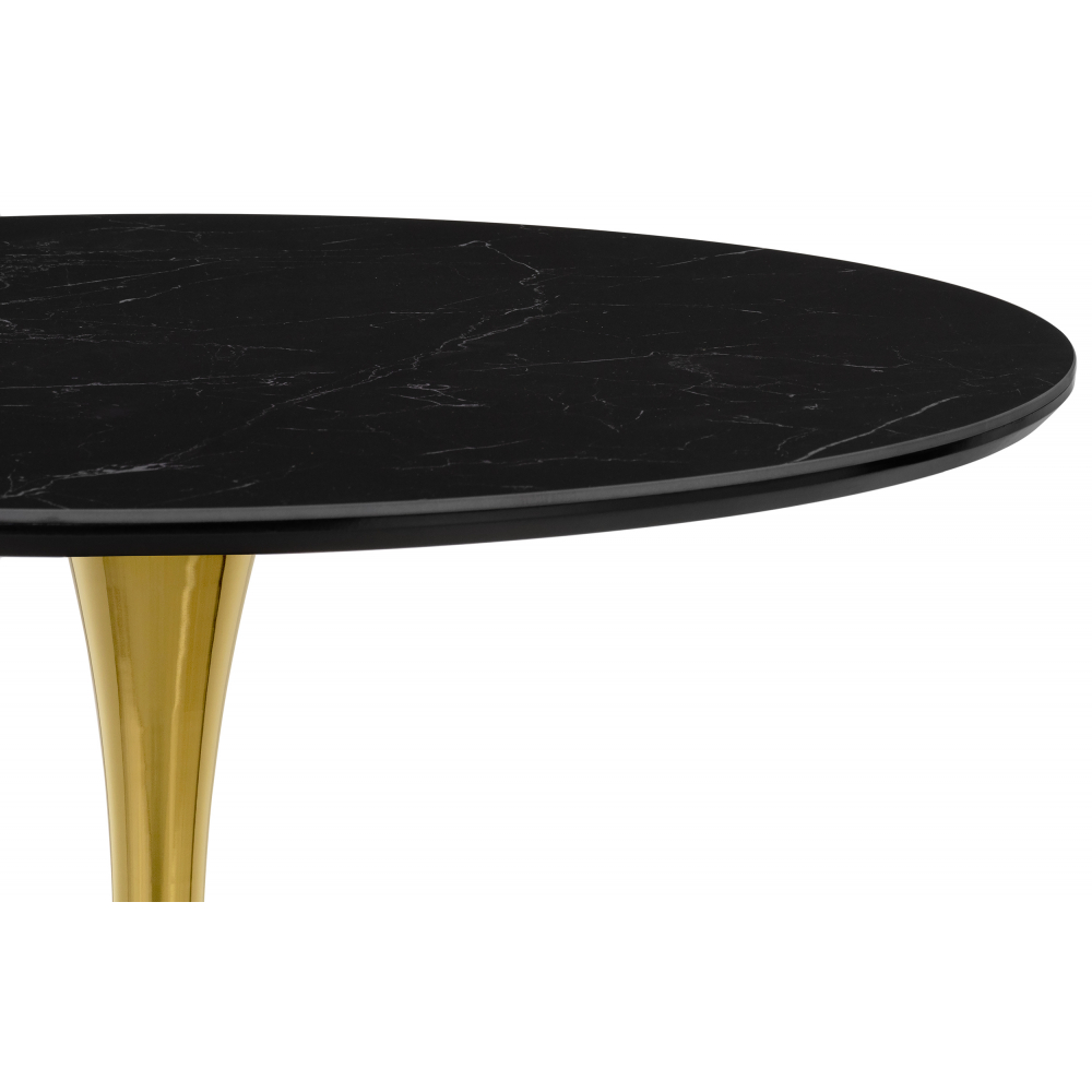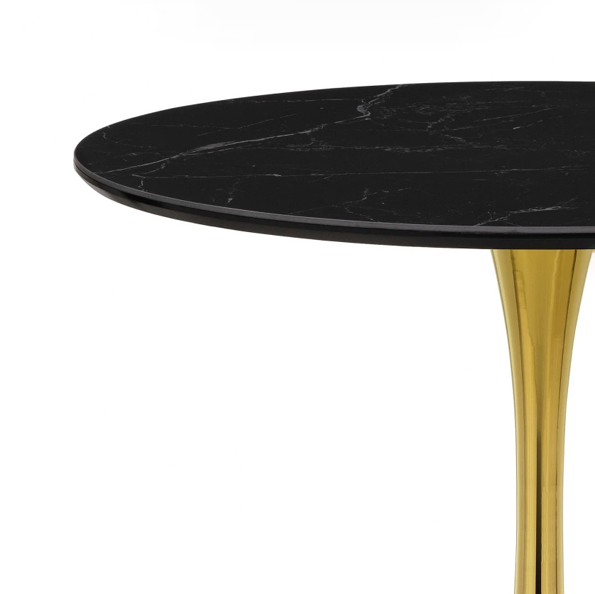 Основа столешницы МДФ 16мм, сверху керамическое полотно толщиной 6мм. Каркас изготовлен из прочного металла в цвете золотой глянец. Толщина столешницы: 2,5 см.