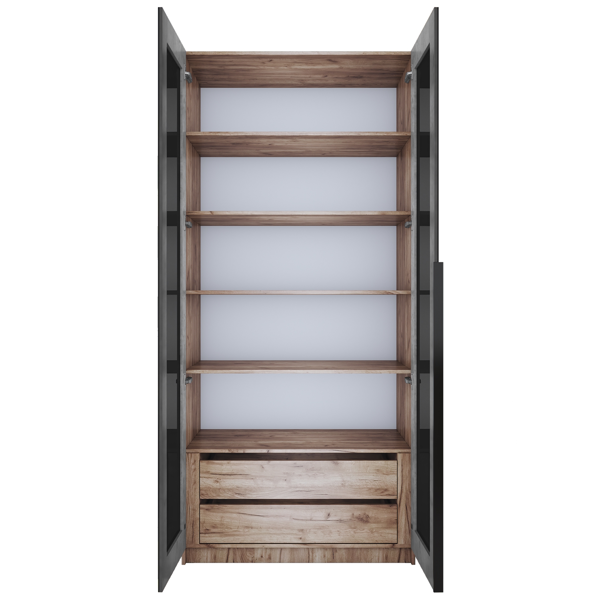 Шкаф распашной Е1 Локер 101x52.5x220 см, с черным стеклом , полками и модулем (Дуб/крафт/табак)