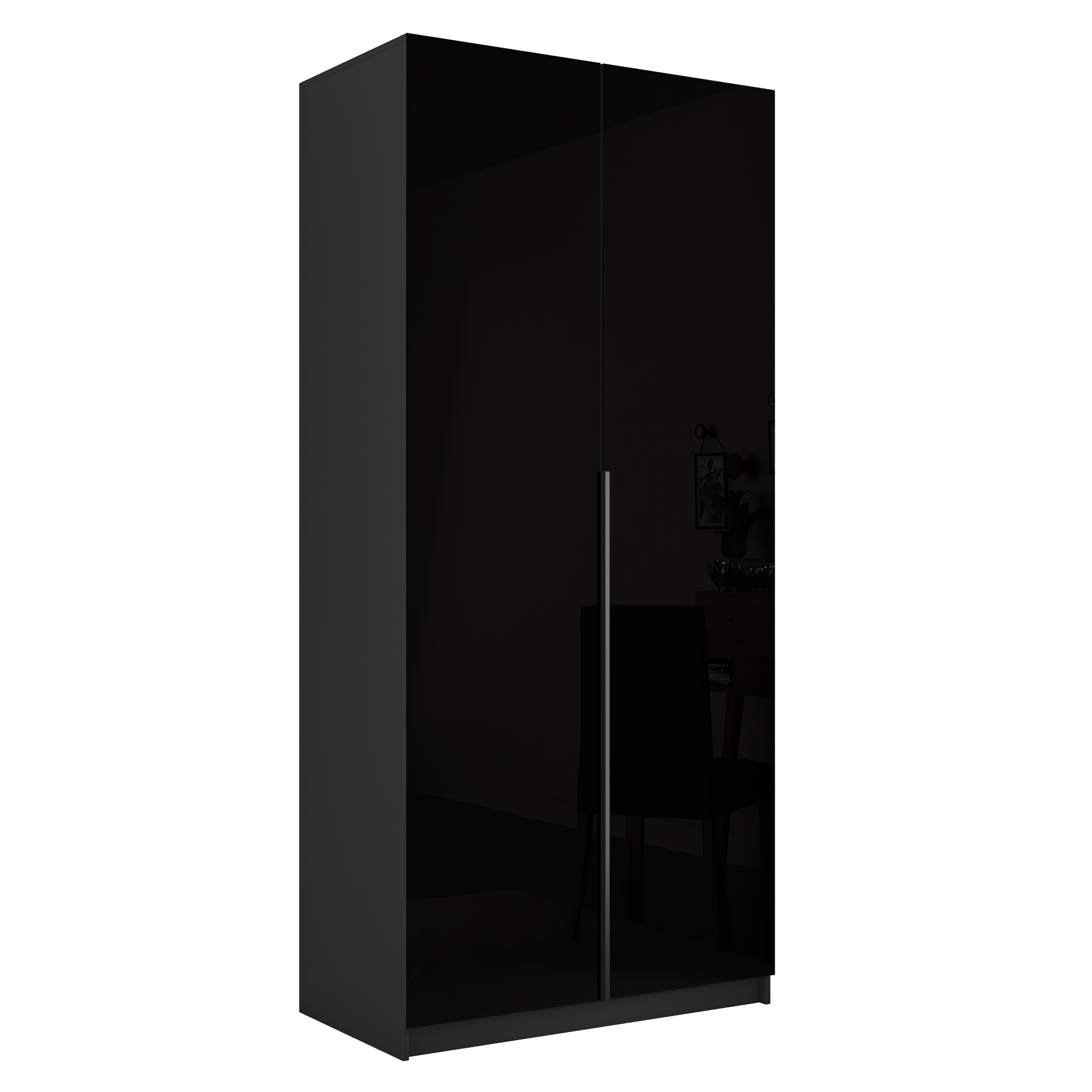 Шкаф распашной Е1 Локер 101x52.5x220 см, с черным стеклом и полками (Серый диамант)