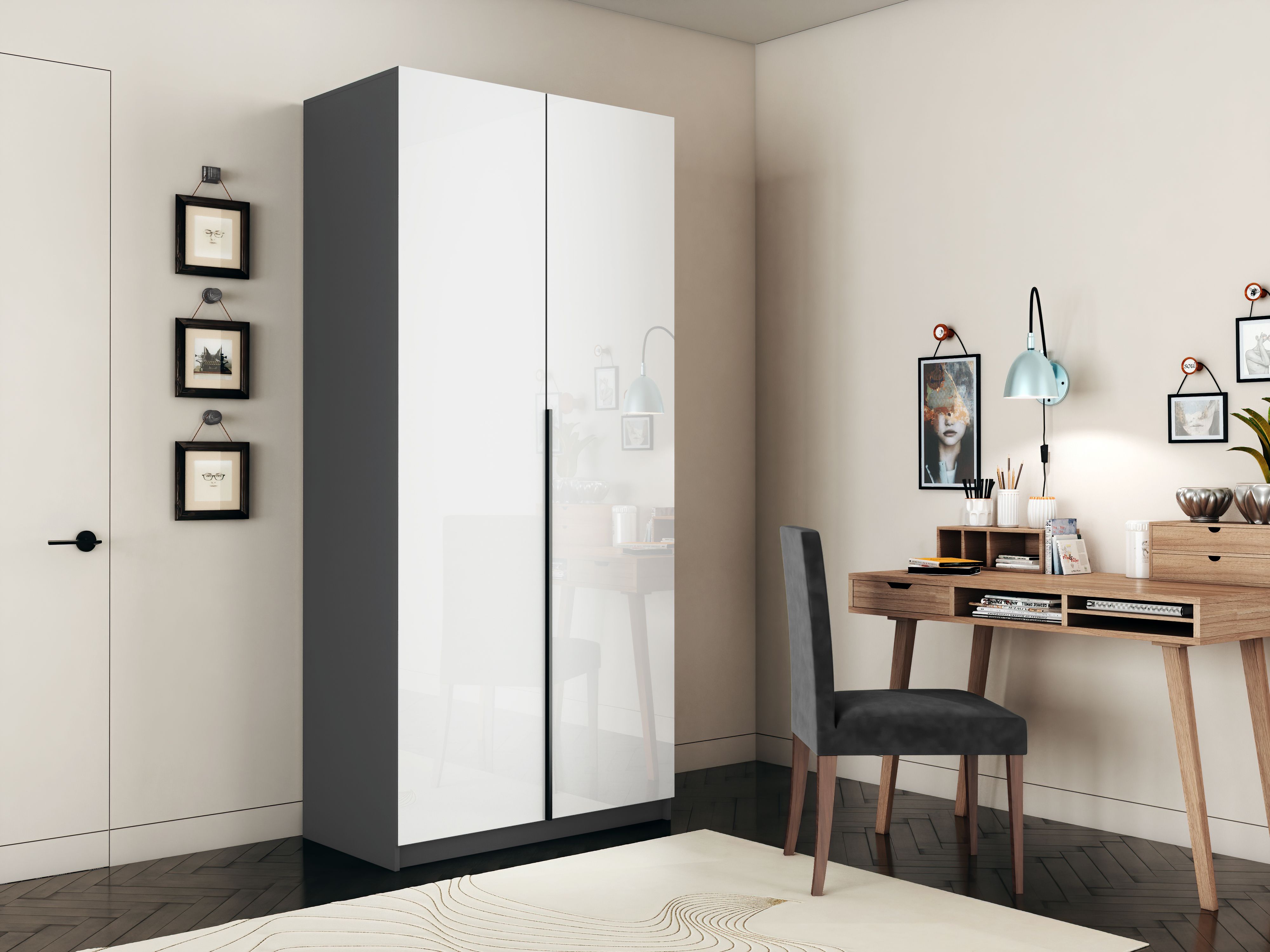 Шкаф распашной Е1 Локер 101x52.5x220 см, с белым стеклом и полками (Серый диамант) Код I0000426782