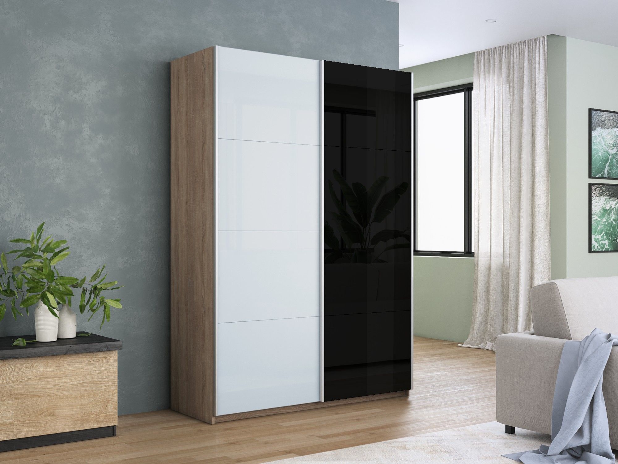 Шкаф-купе Прайм 2-х дверный Стекло белое/Стекло черное/Доводчики 160х57х230 (Дуб сонома)
