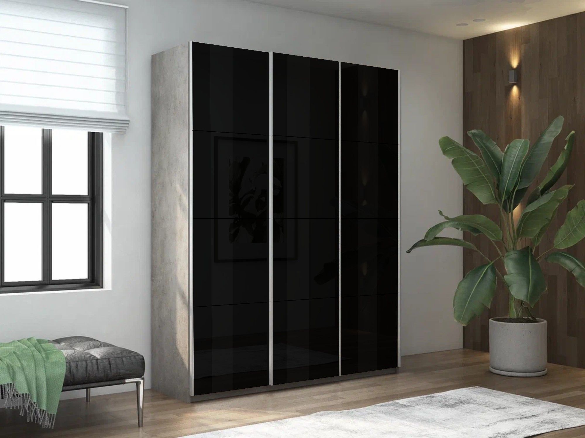 Шкаф-купе Прайм 3-х дверный Стекла черные/Доводчики 210х57х230 (бетон) Код I0000427470