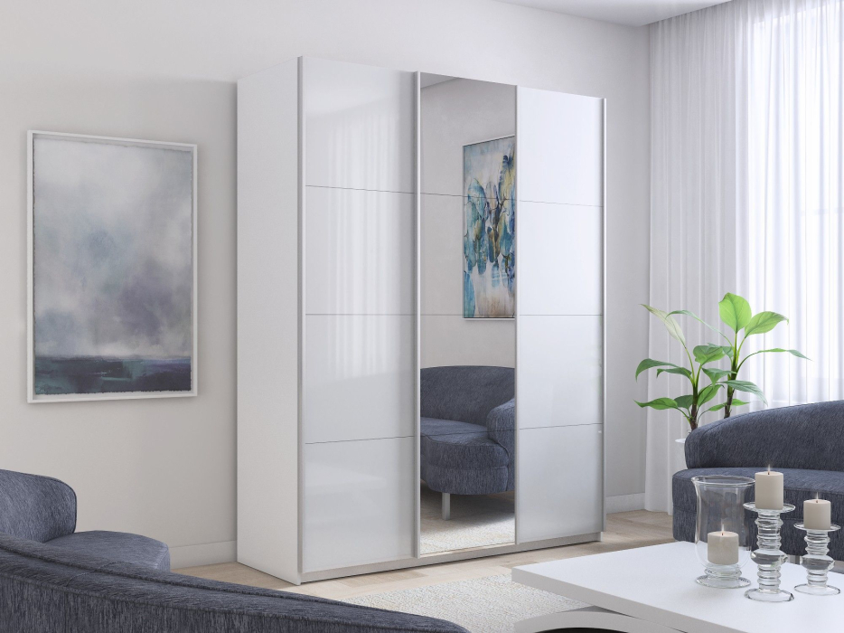 Отзывы о Столплит Шкаф-купе Прайм 3-х дверный Стекла белые/Зеркало/Доводчики 210х57х230 Белый снег