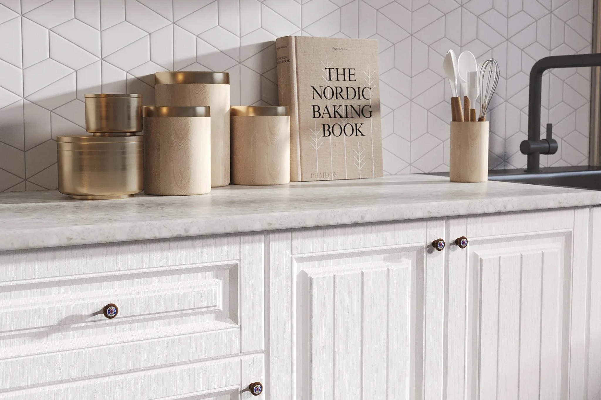 Кухонная мойка, стеновая панель, решётка для посудосушителя приобретаются отдельно.¶