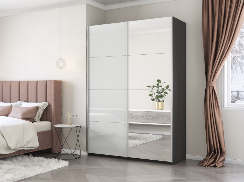 Отзывы о Столплит Шкаф-купе Прайм 2х дверный Зеркало/Белый Глянец 140х57х230 Темно-серый