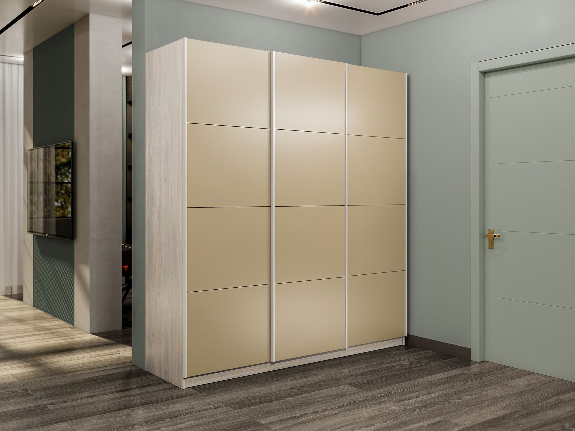 Шкаф-купе Прайм 3-х дверный Стекла фисташка/Доводчики 180х57х230 (Ясень Анкор светлый) Код I0000409329