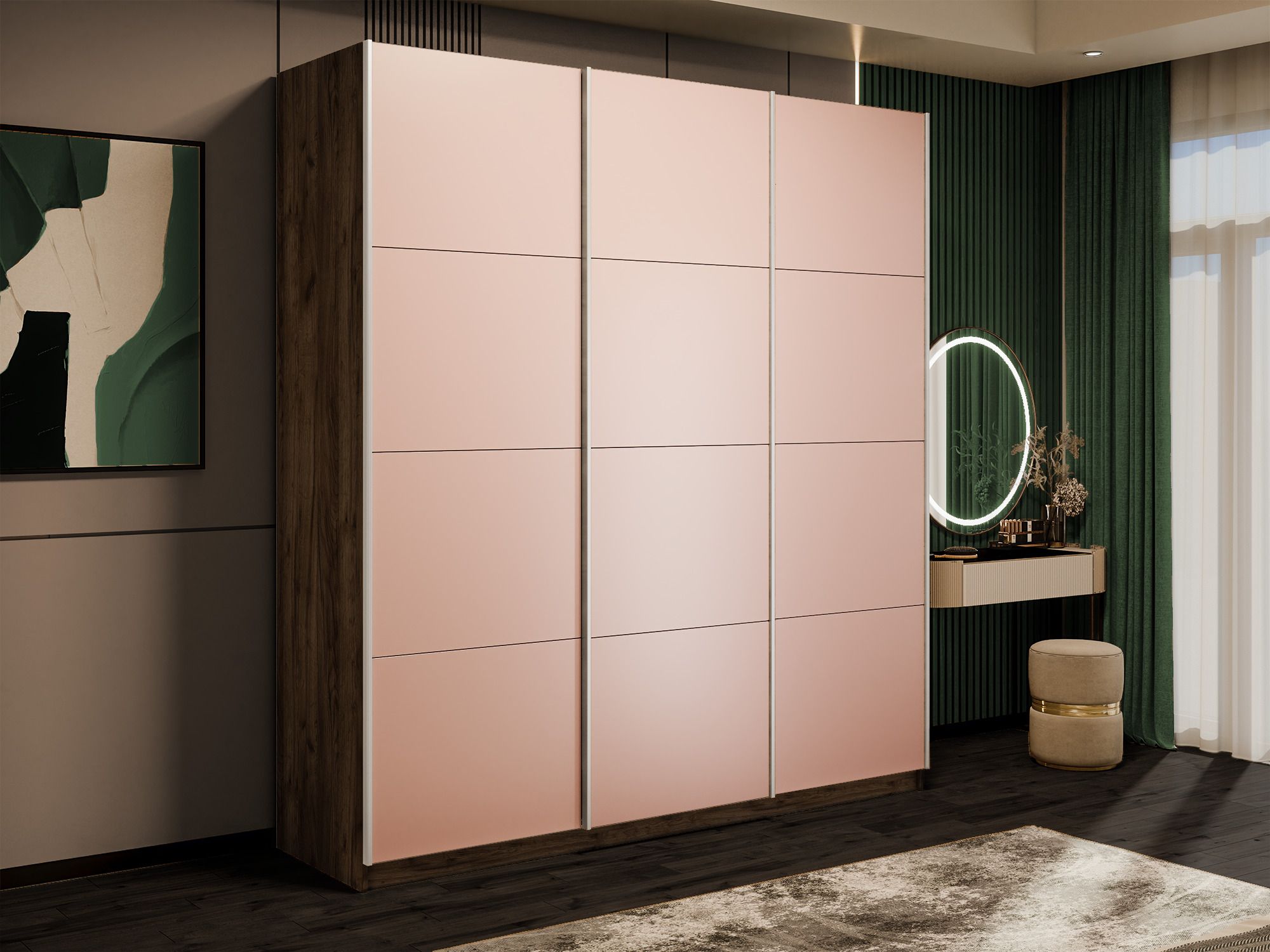 Шкаф-купе Прайм 3-х дверный Стекла пудра/Доводчики 210х57х230 (Дуб/крафт/табак)