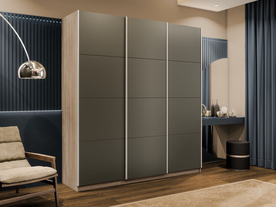 Шкаф-купе Прайм 3-х дверный Стекла хаки/Доводчики 180х57х230 (Дуб сонома)