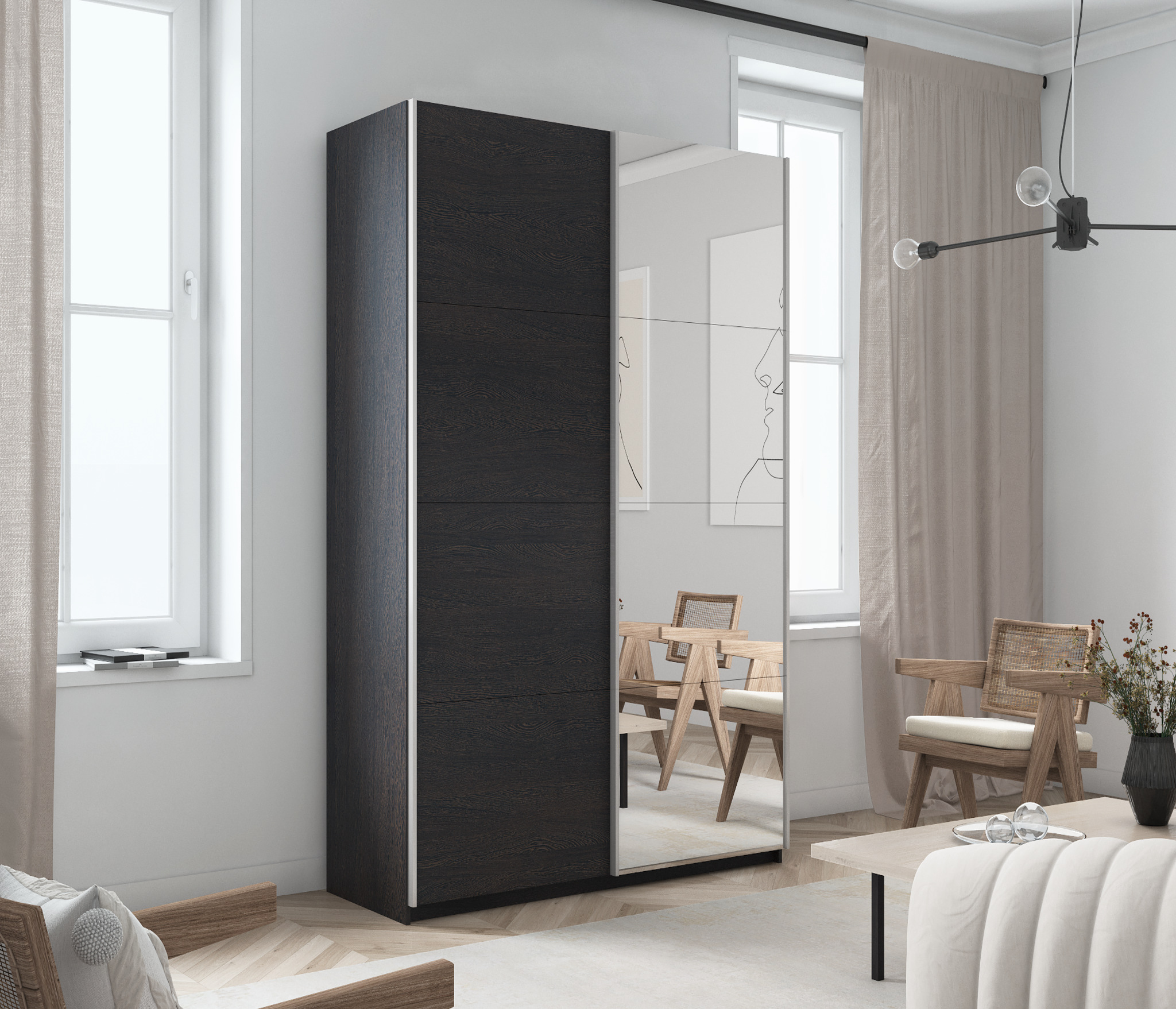 Шкаф Прайм дуо ДСП+зеркало 2300 х 1400 х 570 (Венге)