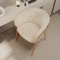 Кресло выполнено в бежевом цвете с золотистыми акцентами, что придает ему изысканный и современный вид. Плюшевая обивка, обеспечивает мягкость и комфорт при использовании.