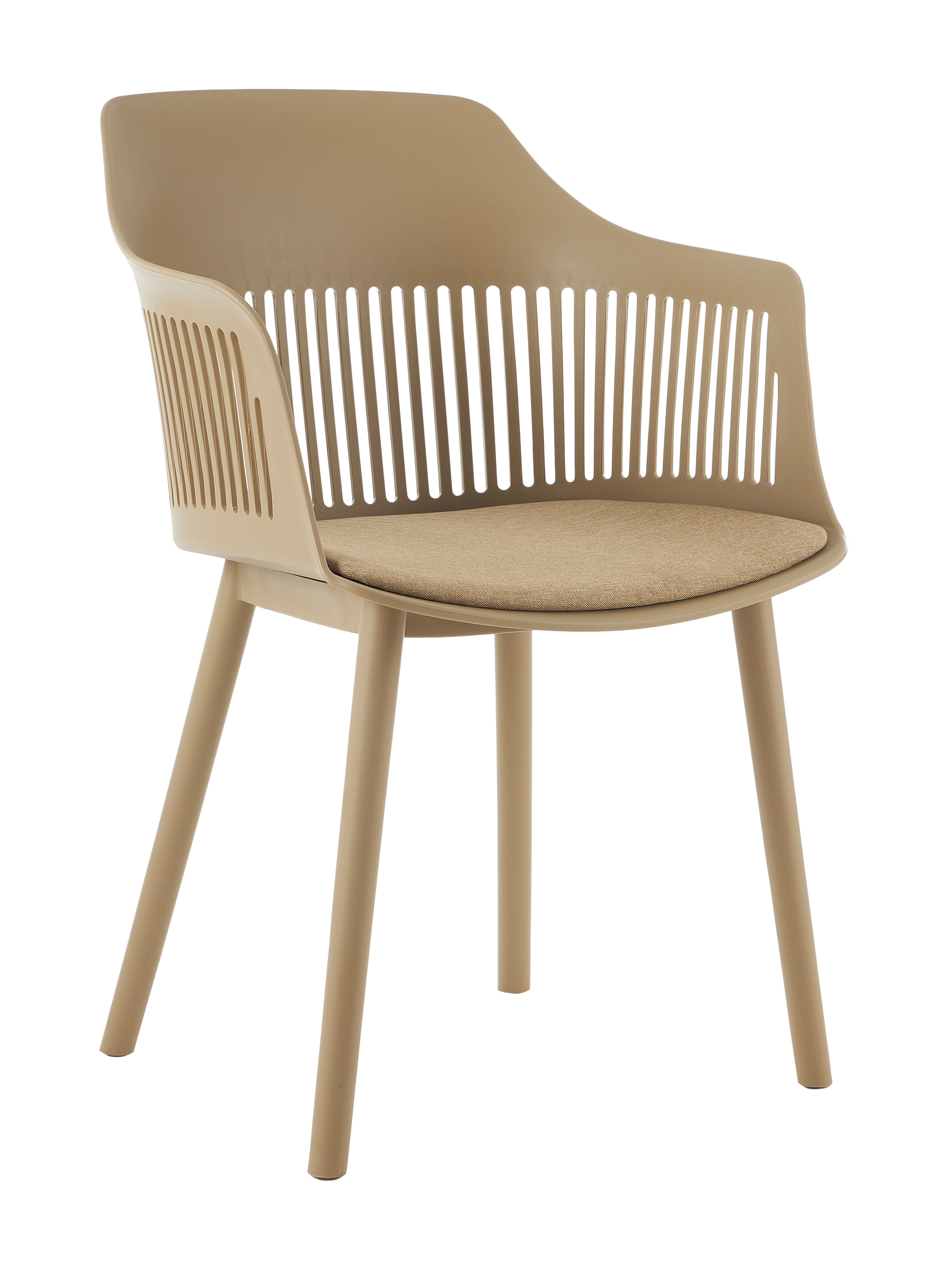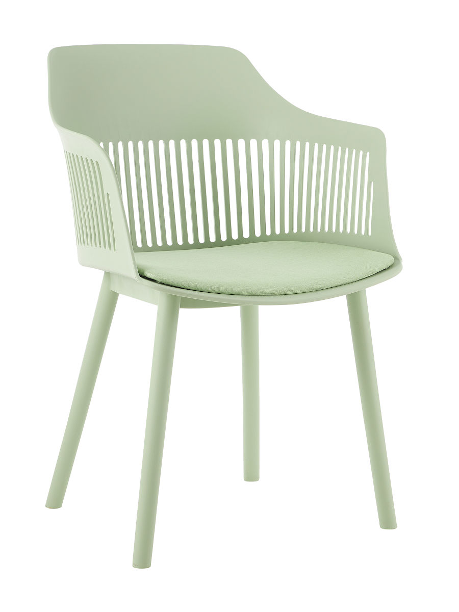 Стул пластиковый с подушкой. Спинка стула и сиденье выполнены из литого пластика. Подходит к использованию как для домашнего использования так и для кафе, баров, ресторанов, отелей