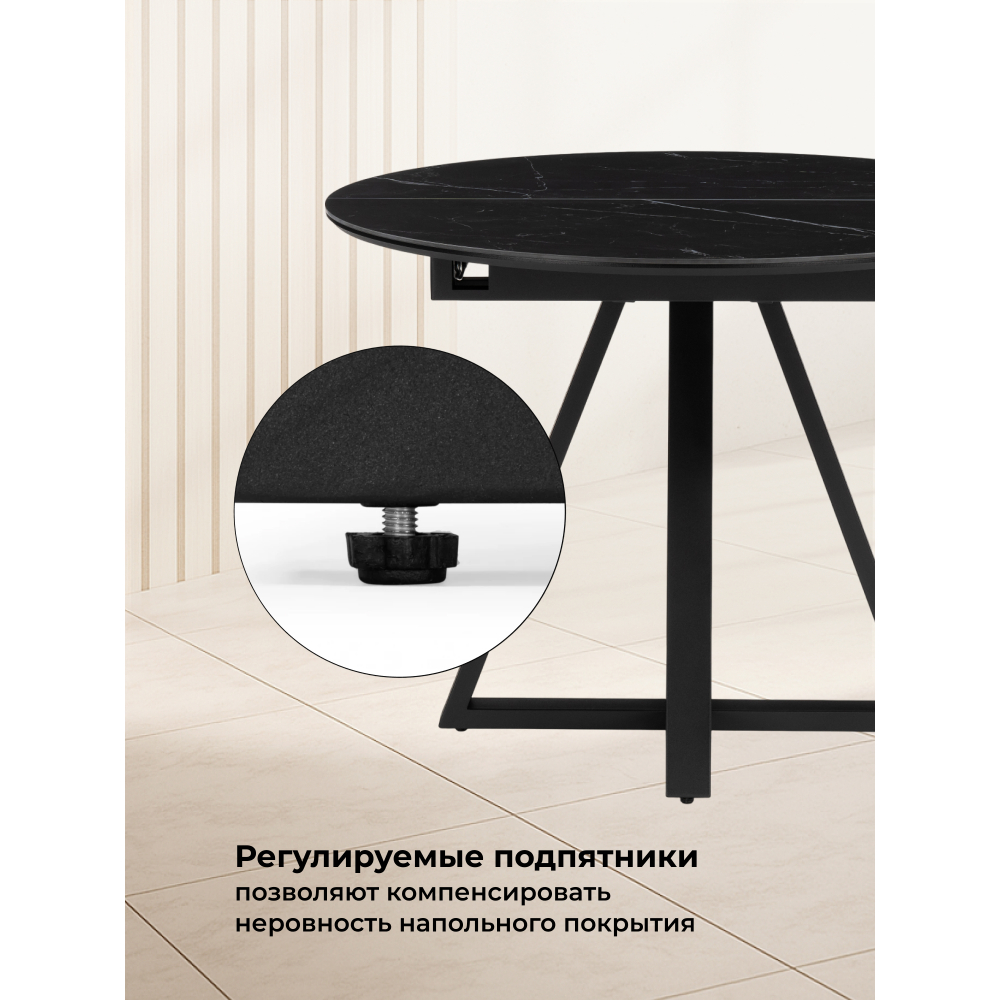 Керамический стол Нельсон с размерами 100(140)х100х76 см и механизмом раскладки "бабочка" — это стильный и функциональный предмет мебели, который отлично подойдет для современных интерьеров. Основа столешницы МДФ - 16мм, сверху керамическое полотно - 6мм