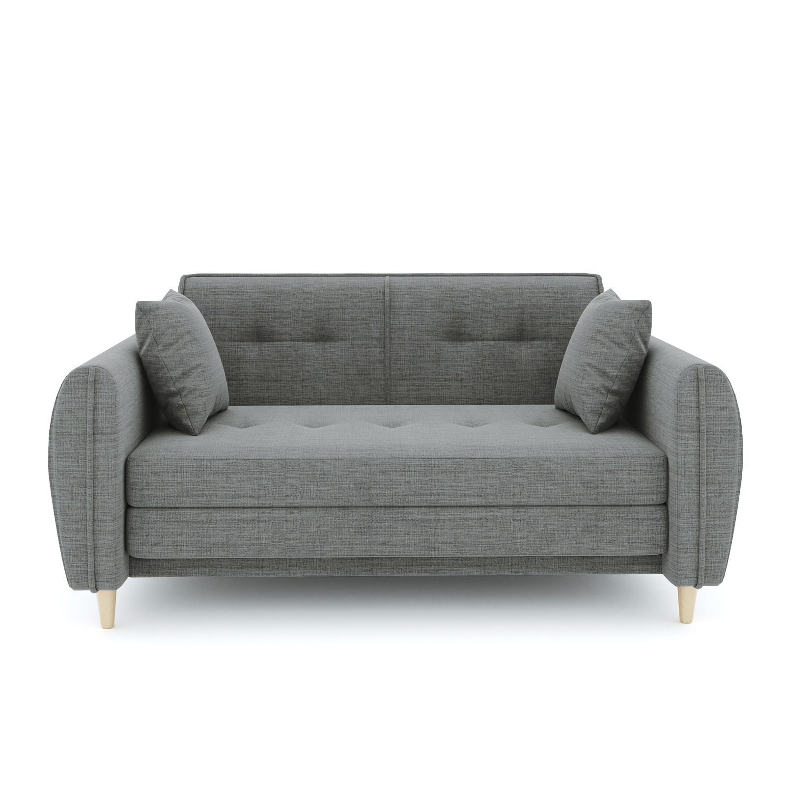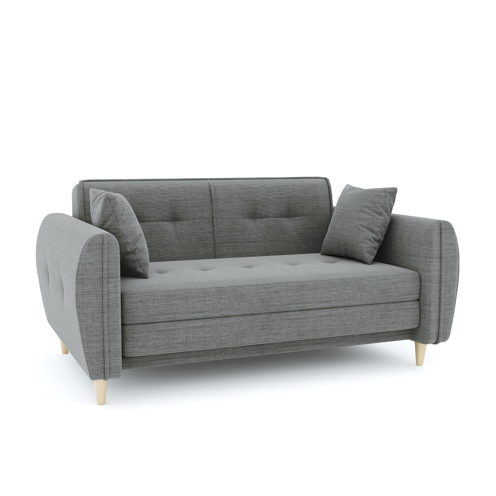Механизм трансформации еврокнижка трехсекционная. Наполнение высокоэластичный ППУ. Жесткость-средняя. Чехол подушки несъемный, наполнение подушки-крошка ППУ. Спальное место полностью в основной ткани. Каркас-ДСП, ДВП, ЛДСП, фанера, брус хвойных пород. Спальное место 1980х1350 Опоры массив березы. Высота опоры 100мм. Глубина сиденья 600мм. Высота сиденья 440мм. Есть небольшой ящик для белья. В комплекте 2 подушки.