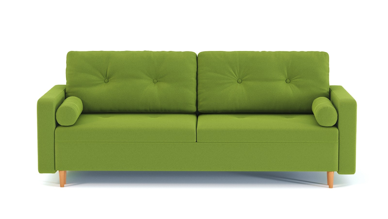 Механизм трансформации-пантограф. Наполнение высокоэластичный ППУ. Жесткость-средняя. Чехол подушек несъемный, наполнение-крошка ППУ. Каркас ДСП, ДВП, ЛДСП, фанера, брус хвойных пород. Спальное место 1950х1440. Ящик для белья есть. Опоры массив березы. Высота опоры 150мм. Высота сиденья 420мм. Глубина сиденья без подушек 760мм. В комплекте 2 большие подушки и 2 подушка/валика.